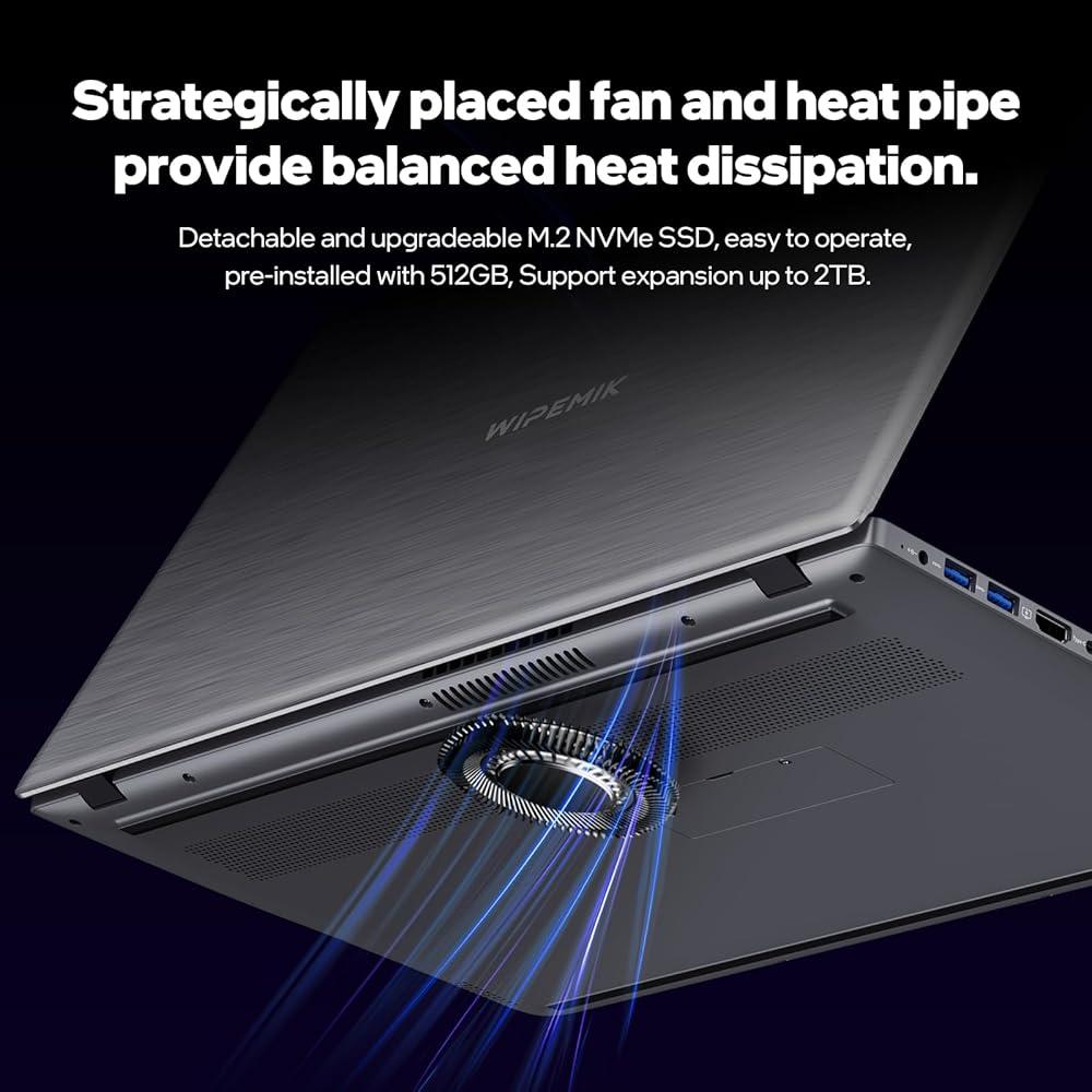 WIPEMIK 15.6인치 노트북 12GB LPDDR5 RAM 512GB NVMe SSD 노트북 컴퓨터 N95 프로세서 FHD IPS 화면 Win11