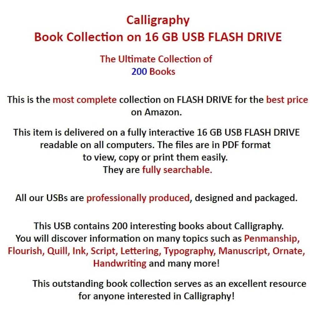 200권의 책 - 서예 - 펜맨십이 번성하는 퀼 잉크 대본 레터링 - USB 플래시 드라이브