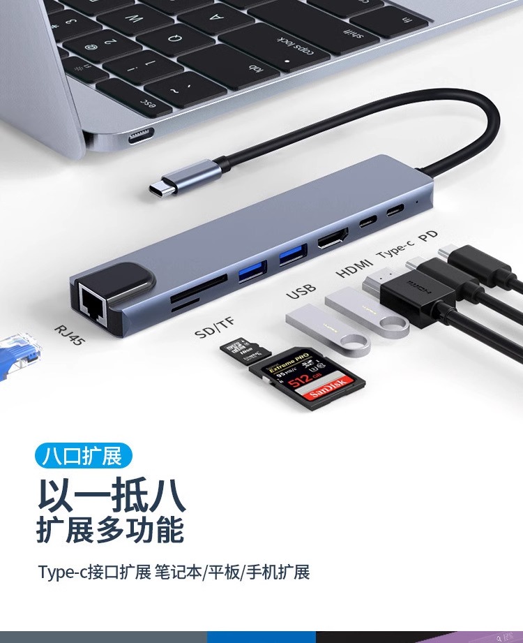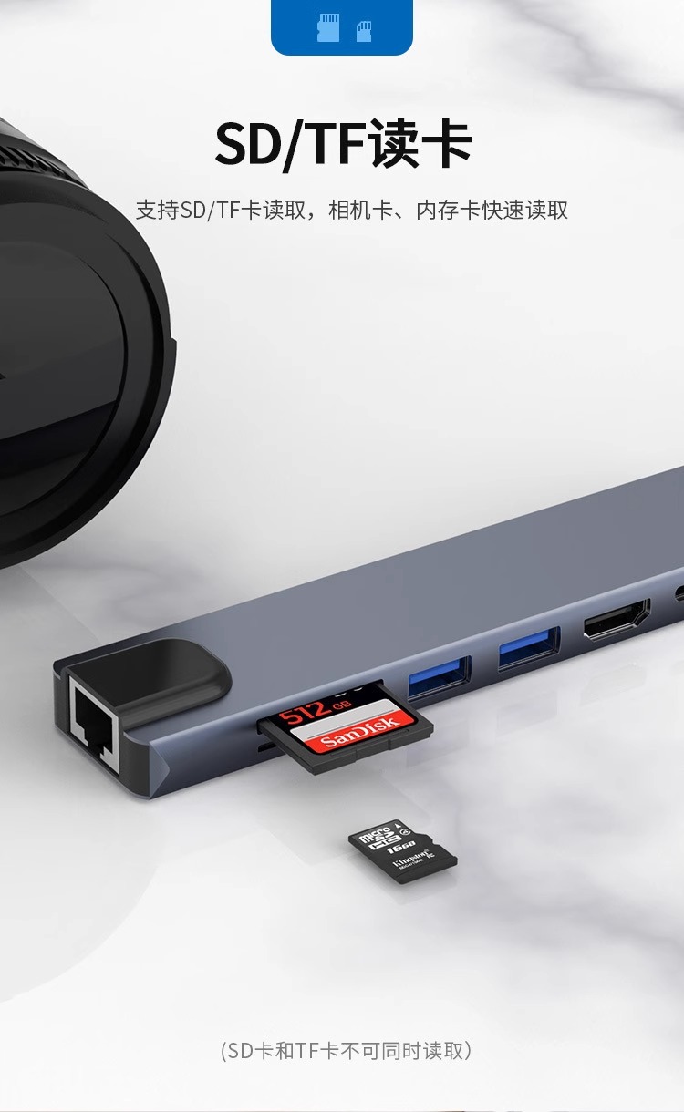 색상 분류 : 8 1 HDMI4K30Hz+USB3.0+USB2.0+PD+TYPE C+SD/TF+