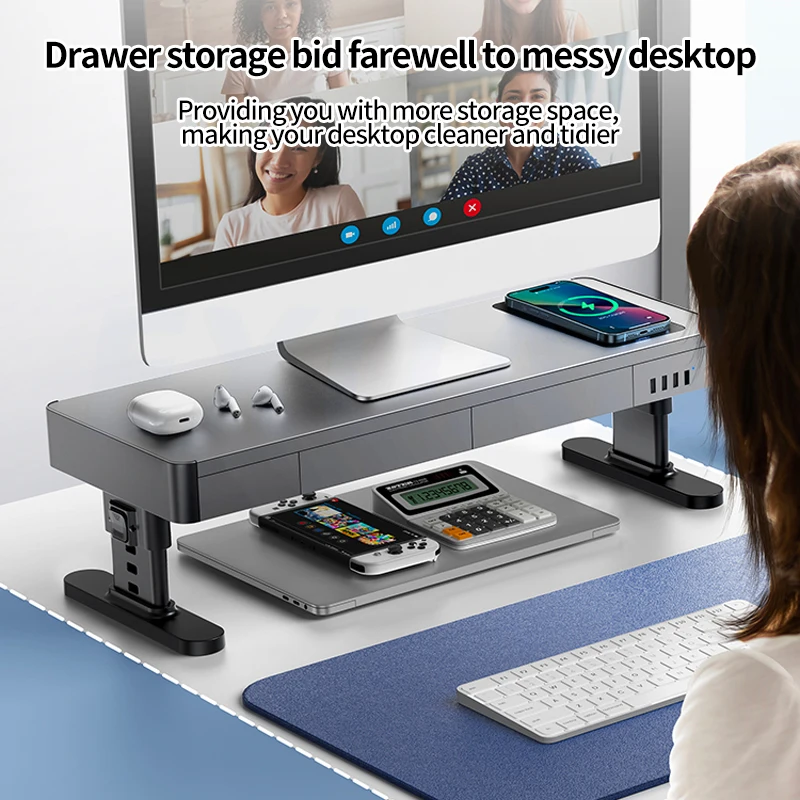 모니터 부스터 조정 가능한 리프팅 USB 도킹 스테이션 다기능 스탠드 거치대 핸드폰 무선 충전 UBS3.0 UBS2