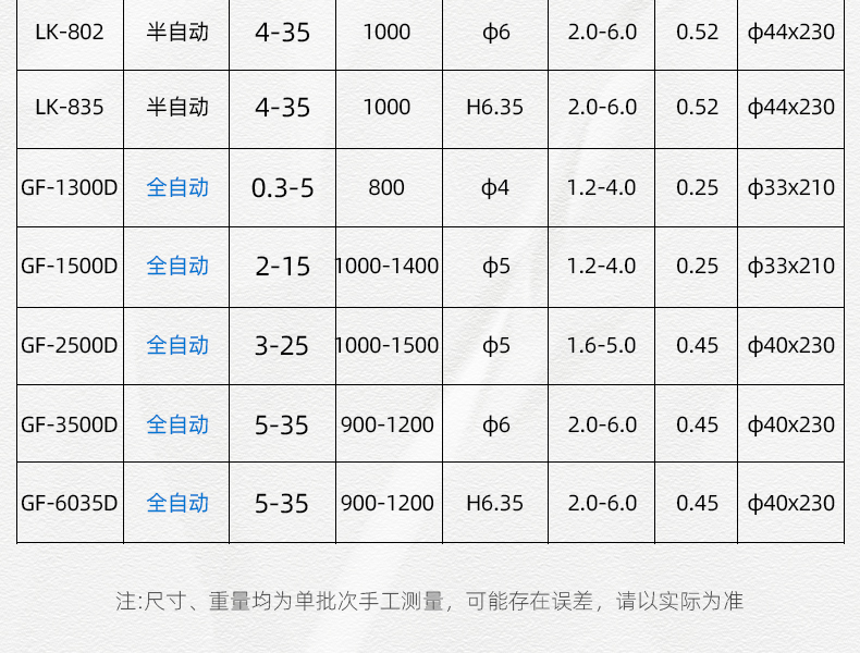 색상 분류 : GF2500D 전자동 5 배달 헤드 세트 ![]() | 색상 분류 : GF3500D 전자동 6 배달 헤드 세트 ![]() | 색상 분류 : GF6035D 전자동 육각 H6.35 배달헤드 세트 ![]() |