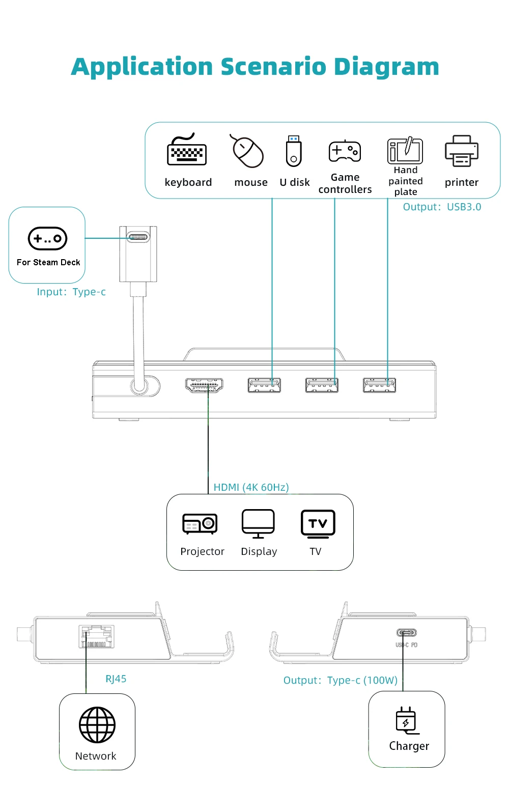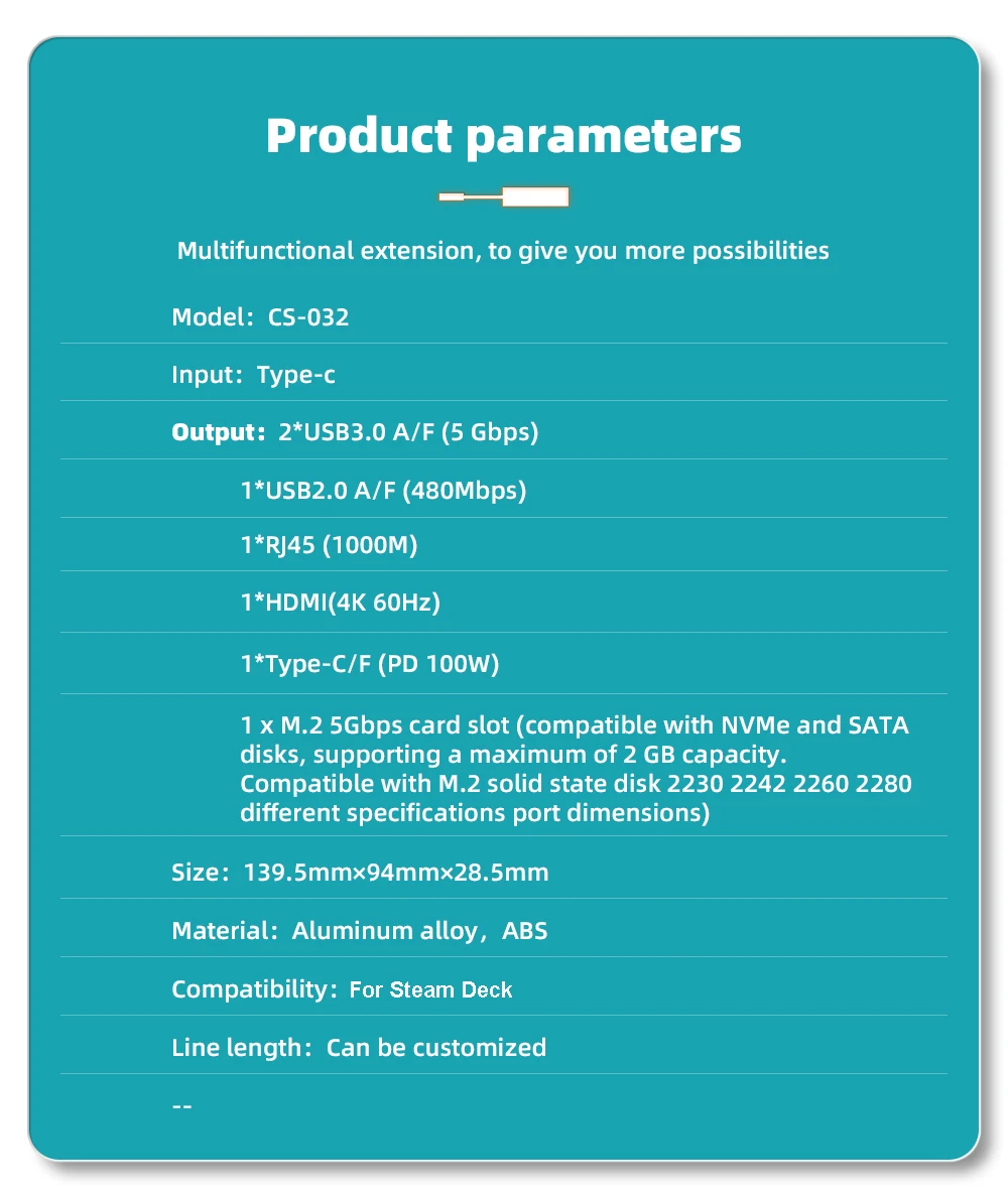 | 모델 번호 | USB C for Steam Deck Docking Station for M.2 NVMe SATA SSD |