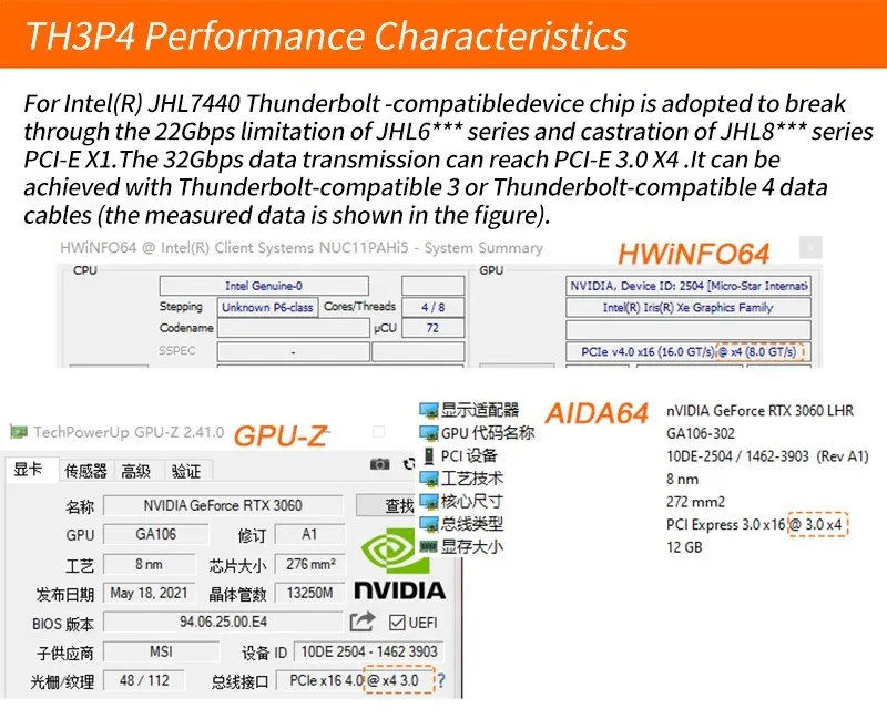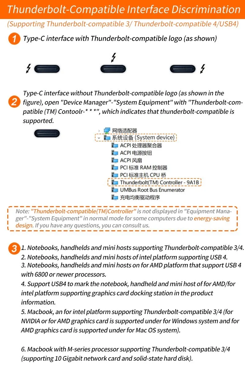 | Support laptops | Laptop with Thunderbolt-compatible 3/4 interface (USB4 is compatible) |