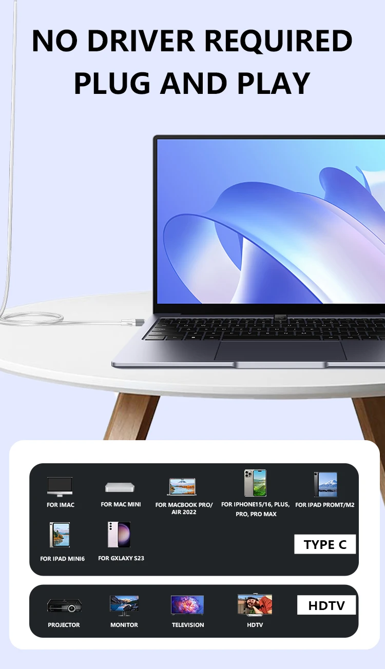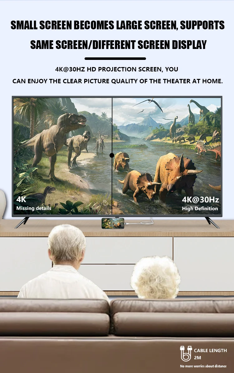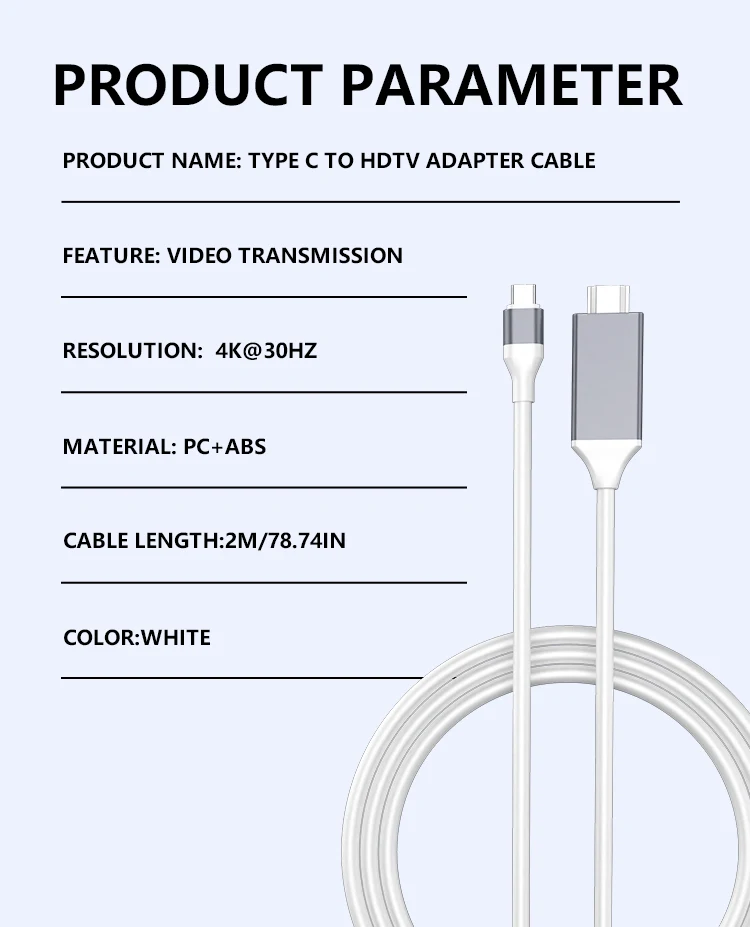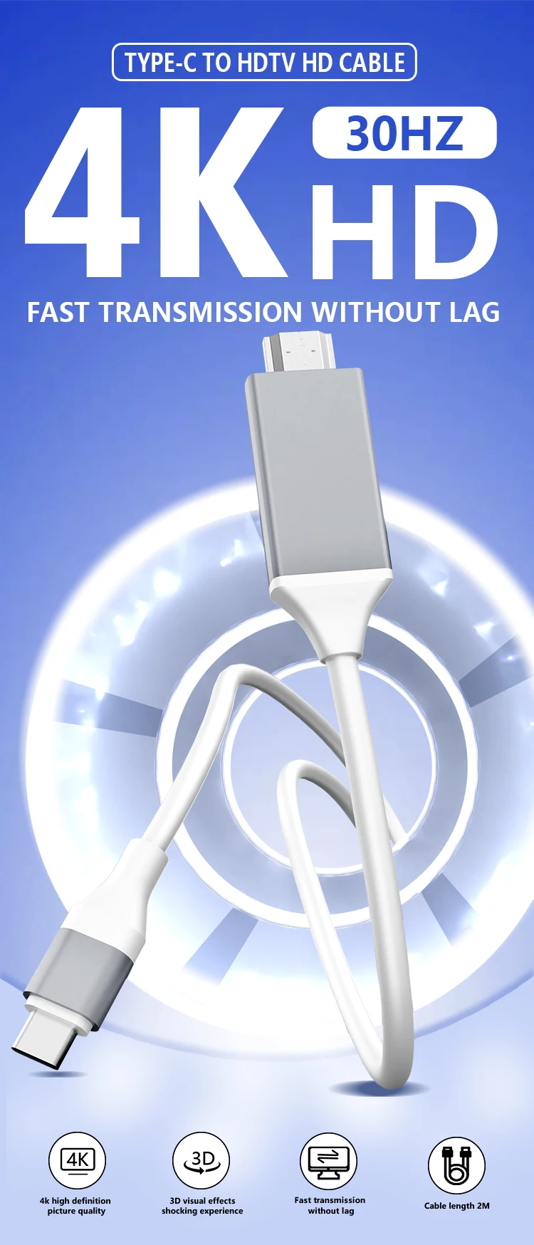 흰색 USB HD 태블릿 출력 2M 동글 변환기 56FT 코드 패드용 노트북 비디오 케이블 4K30HZ 전화 TYPE