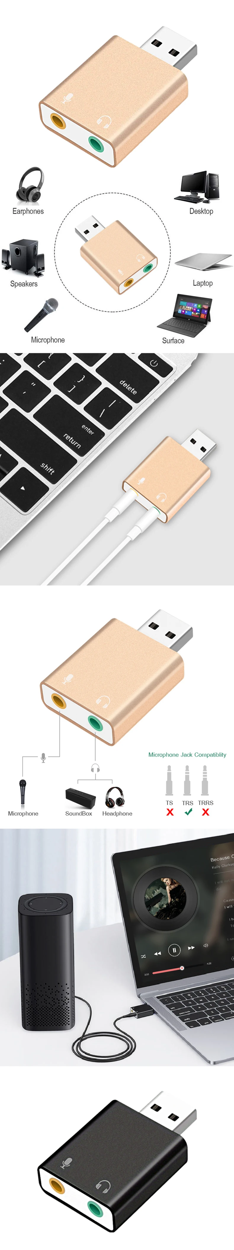USB 사운드 카드 가상 외부 변환기 오디오 이어폰 분배기 어댑터 마이크 5MM