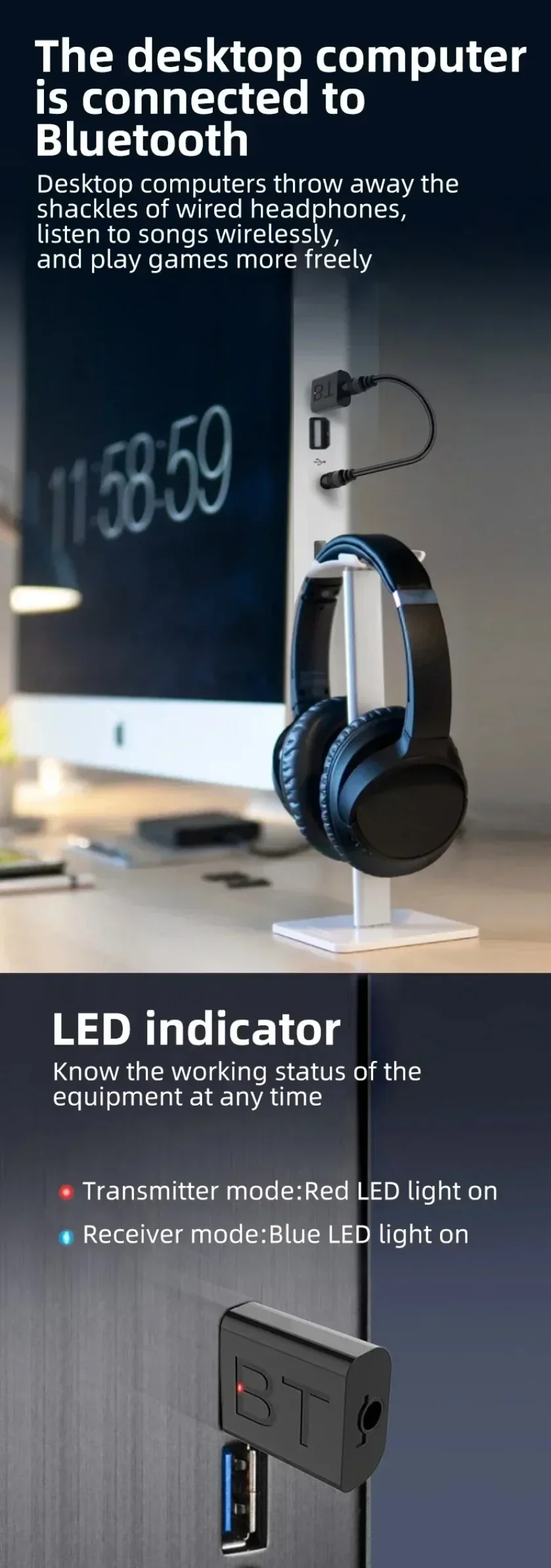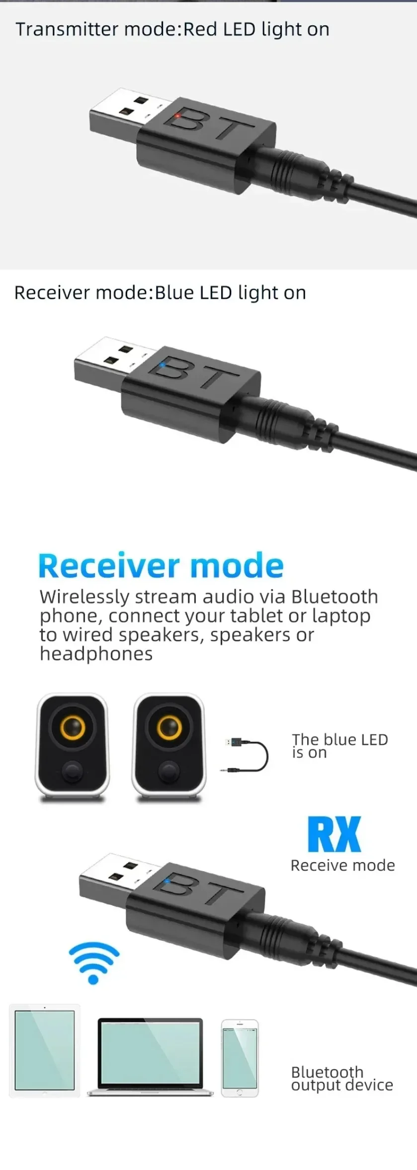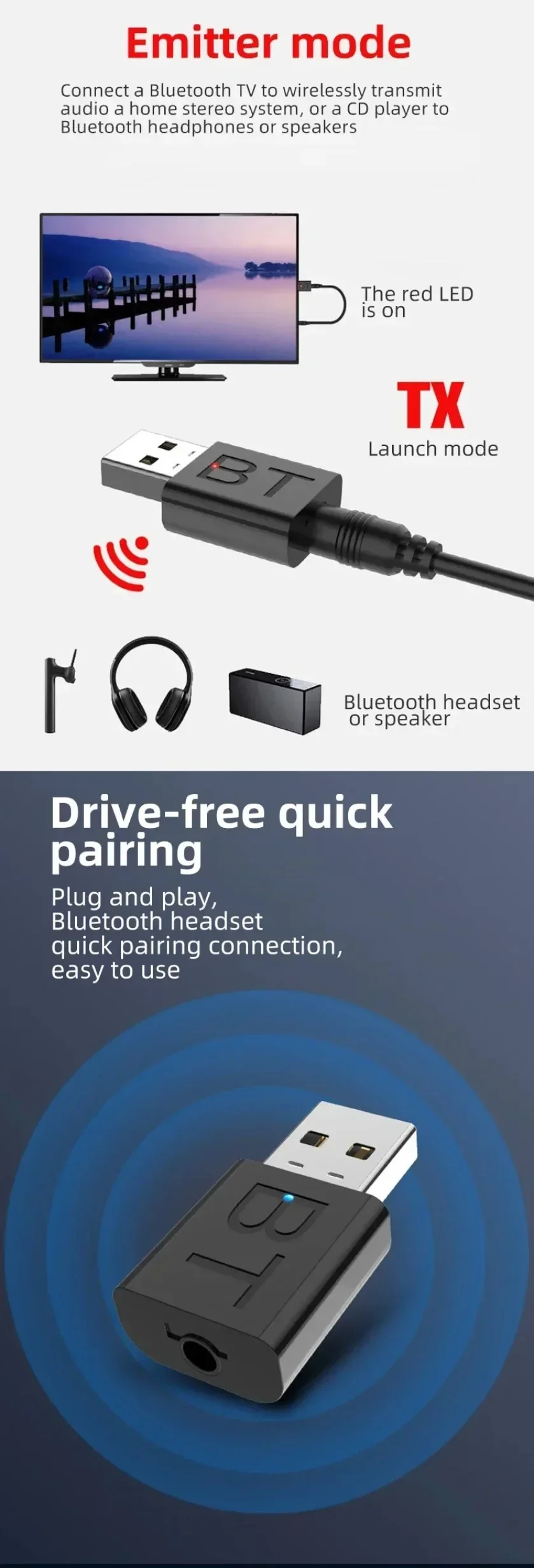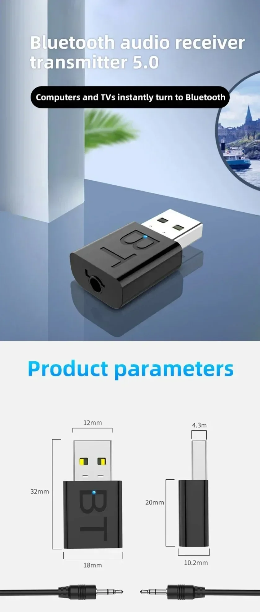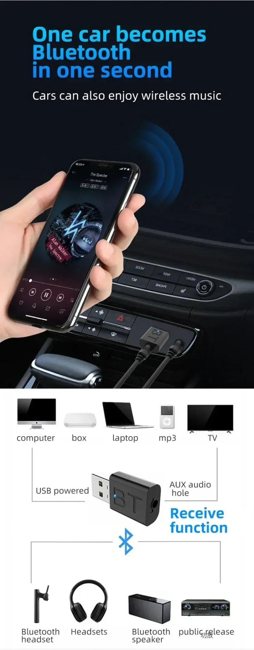 XIKCU USB 블루투스 TV 스테레오 5MM 차량용 어댑터 폰용 무선 수신기 PC 오디오 AUX 음악
