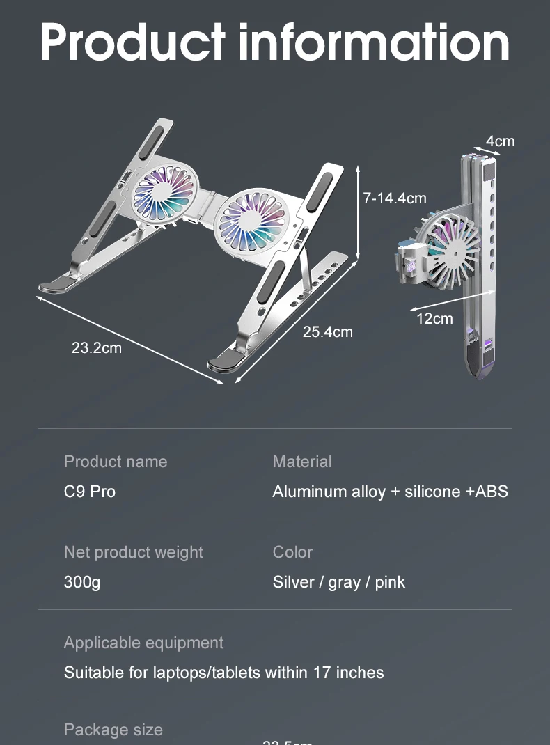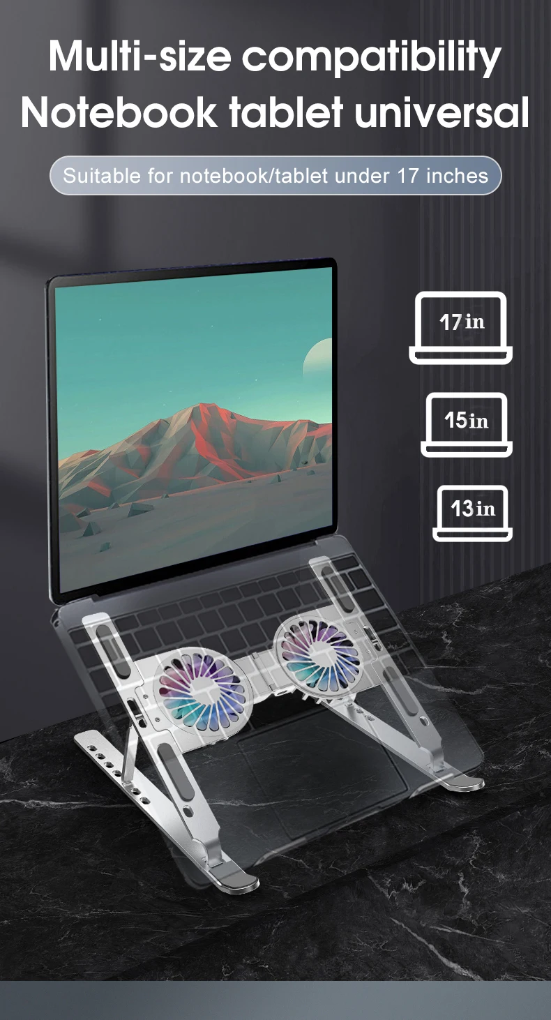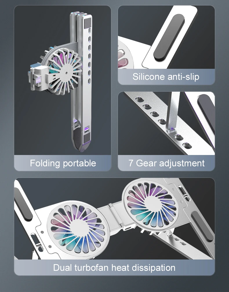 쿨러 쿨링 팬 노트북 거치대 브라켓 접이식 스탠드 태블릿 휴대용 홀더 17인치 이내 게임용 태블릿용