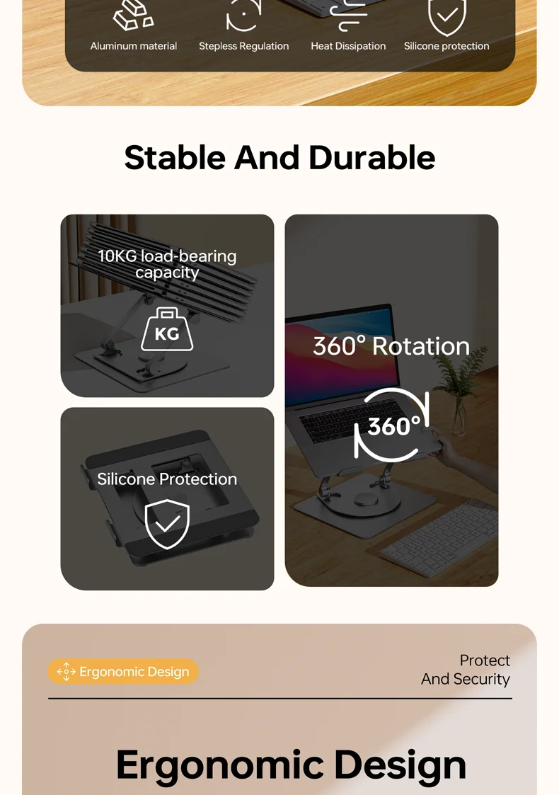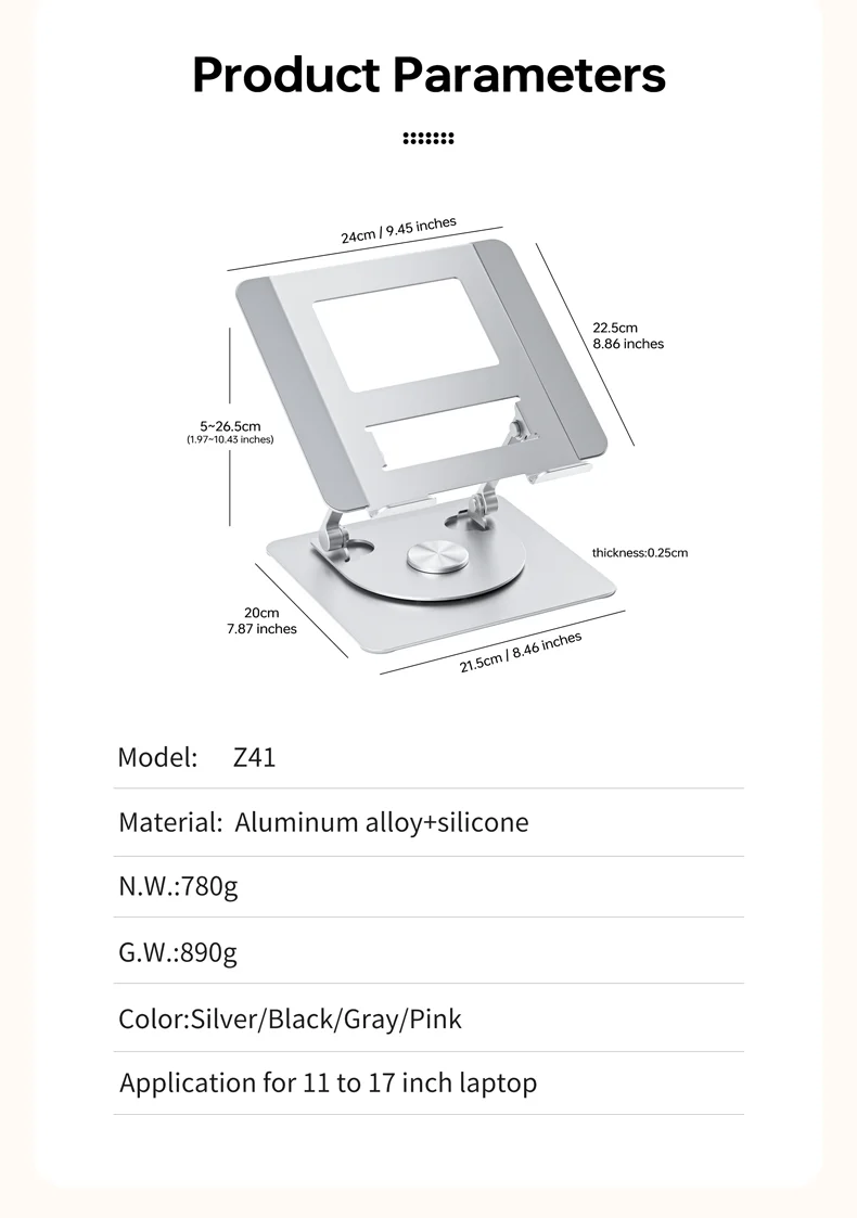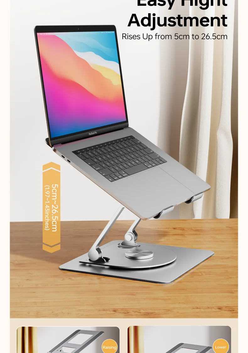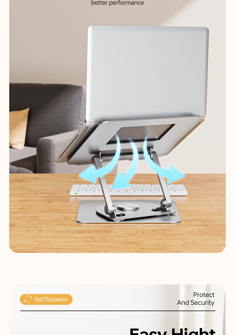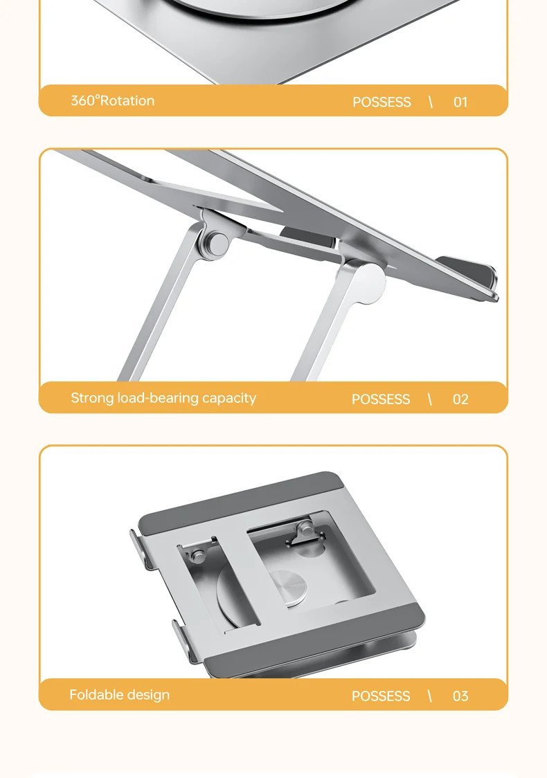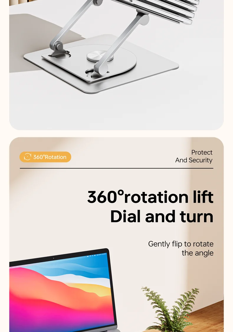360도 조절 가능한 노트북 쿨링 홀더 쿨러 최적의 편안함 스탠드도 컴퓨터 접이식 회전 고정식 인체공학적