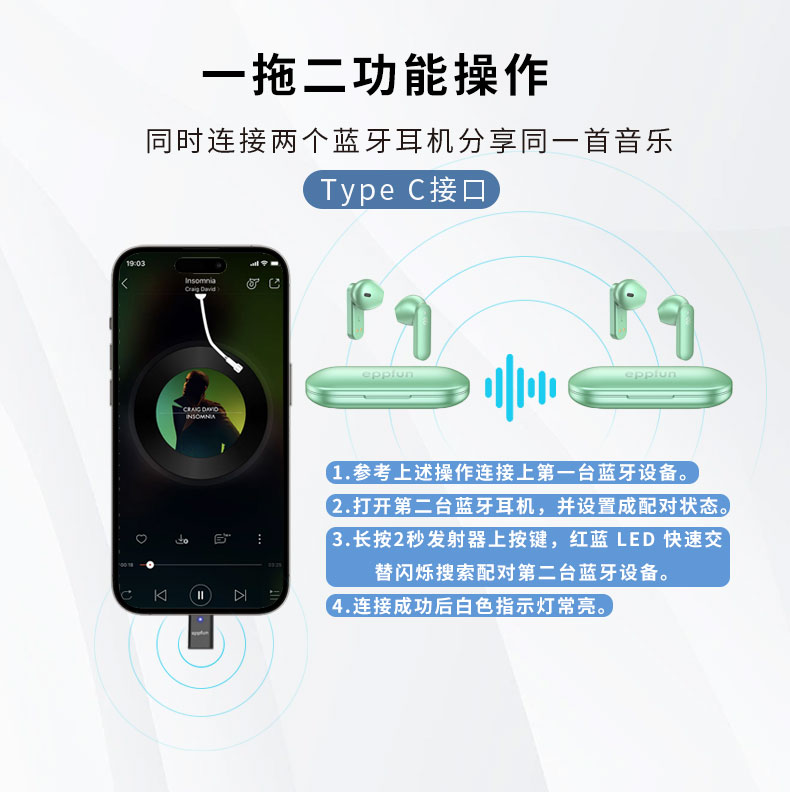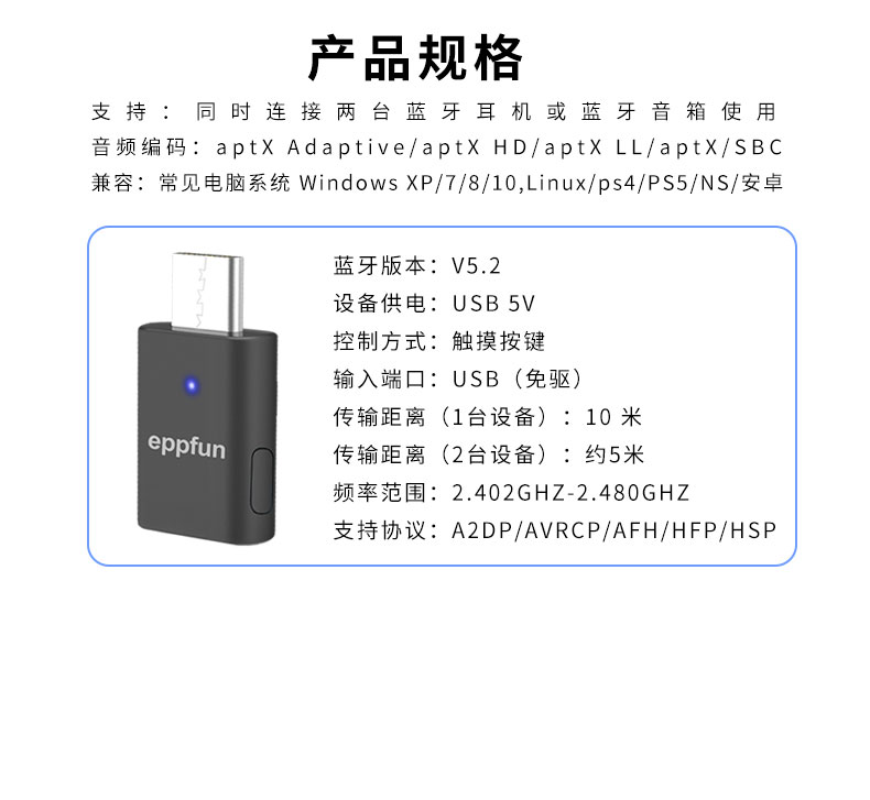 Eppfun 퀄컴 aptX 적응형 동글 플레이어TV용 수신기 자동차비행기보트MP34 광학