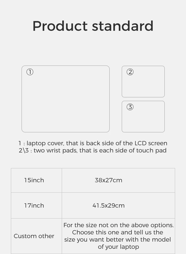 | size | 12" 13.3" 14" 15" 15.6" 17" laptop |
