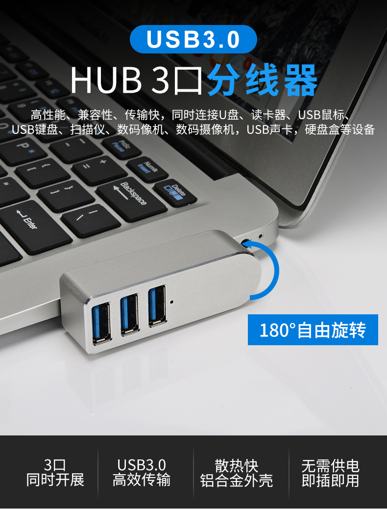 포트 3 회전식 USB 미니 스플리터 어댑터 박스 전송 허브 PC 범용 고속 데이터