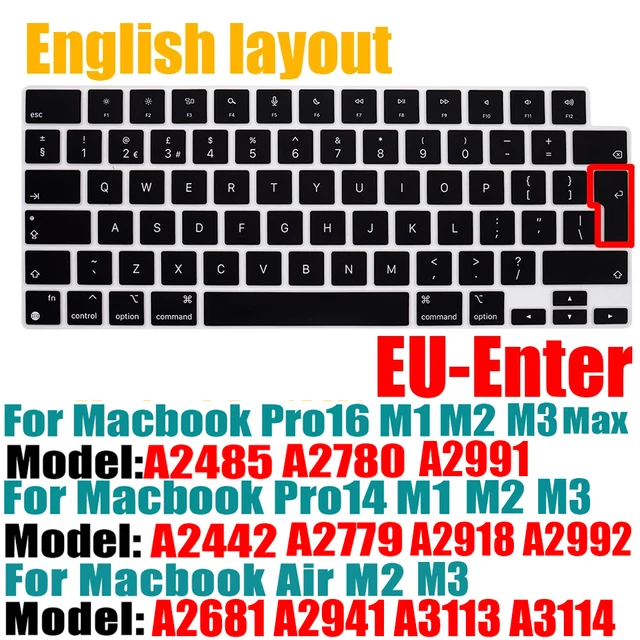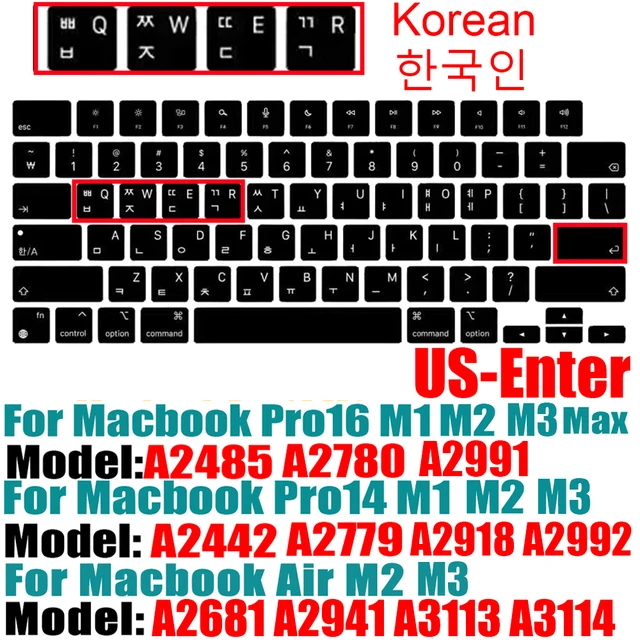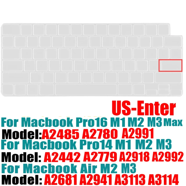 맥북 프로 14M1 M2 Air13.6 M2 모델 A2442 A2779 A2681 새 버전 및 맥북 프로 16 인치 모델 A2485 A2780 (터치 ID Retina 디스플레이 포함) 과 호환 가능 미국/EU레이아웃 MacBook의 모델 번호 "Axxxx" 노트북 하단에 호환성을 결정합니다. 방수 및 방진, 키보드 커버 먼지, 액체 유출 (커피/맥주/우유), 키 마모, 오염 등으로부터 MacBook 키보드를 완벽하게 보호합니다. 유연하고 빨 수 있으며 세척 또는 소독을 위해 쉽게 바르고 제거 할 수 있습니다. 프리미엄 엔지니어링 등급의 내구성이 뛰어난 무독성 실리콘으로 제작되어 0.3 mm까지 매우 얇아 화면을 손상시키지 않으며 타이핑하기가 더 쉽습니다. 잘 움직이지 않도록 끈적거림이 좋다. 주름없이 반복적으로 반죽 가능