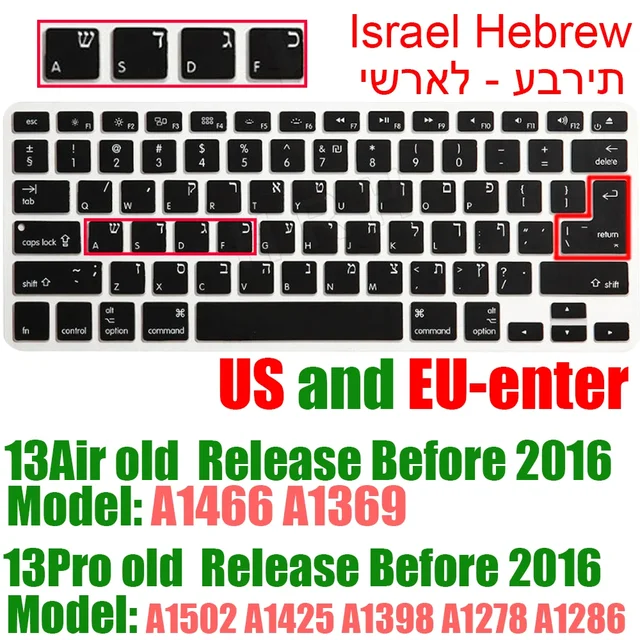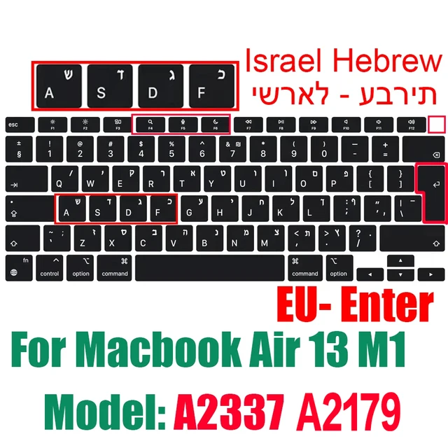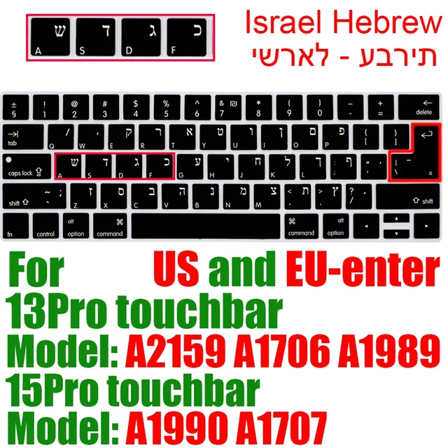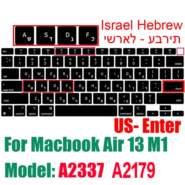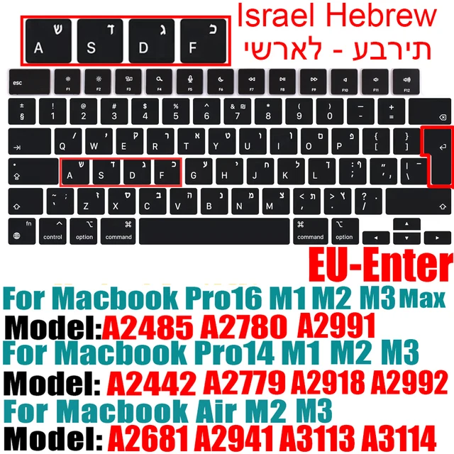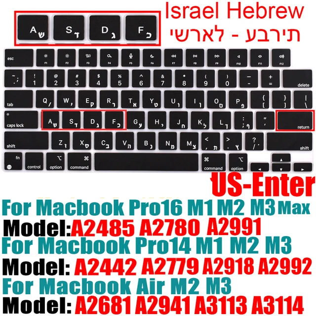 맥북 용 이스라엘 히브리어 키보드 커버 Pro14 A2442 Air13.6 M2 A2681 Pro13 M1 A2338 A2289 방수 실리콘 보호 필름