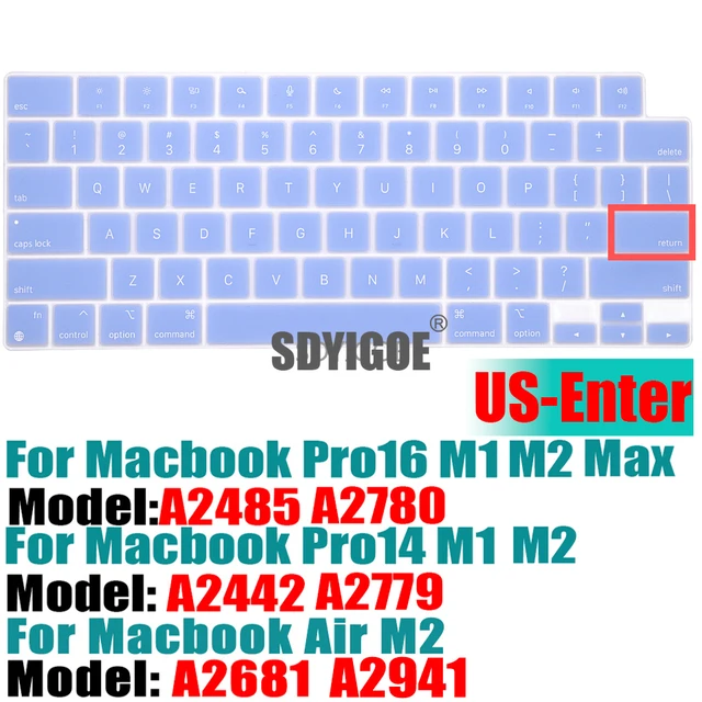맥북 에어 A2941 A2681 M2 칩 Pro14/16 "A2442A2779A2485A2780 울트라 씬 프로텍터 액세서리용 실리콘 키보드 커버 스킨