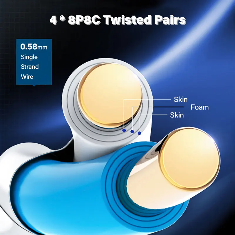 최대 40 Gbps 데이터 전송 속도로 카테고리 8 네트워크 표준을 준수하여 최대 100 피트의 빠른 무제한 서핑을 즐길 수 있습니다.