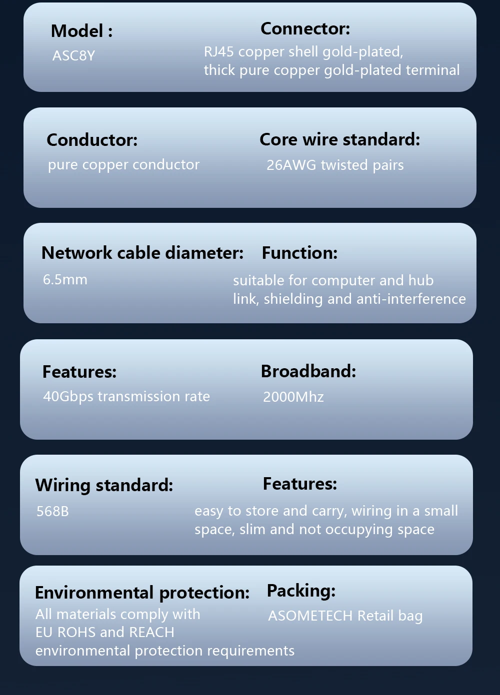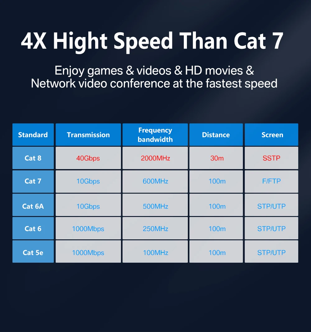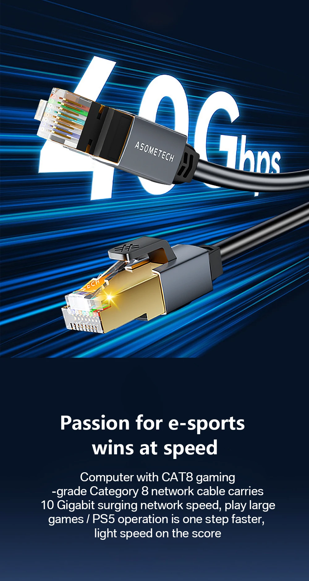 ??【 40 Gbps 2000 MHz 이더넷 케이블 고양이 8 】 ASOMETECH Cat 8 이더넷 케이블 15 피트 최대 40 Gbps 데이터 전송 속도 지원 (4 x V.S Cat 7 with 10 Gbps) 및 2000 MHz 대역폭 (3 x V.S Cat 7 (600 MHz 포함). 서버 응용 프로그램, 클라우드 스토리지, 온라인 HD 비디오 스트리밍을위한 안정적인 네트워크 속도 보장 지연이나 중단없이 게임을 할 수 있습니다. 네트워크 케이블은 99% 네트워크 문제를 해결할 수 있으며 게임 이더넷 케이블은 게임용으로 가장 적합한 이더넷 케이블입니다.