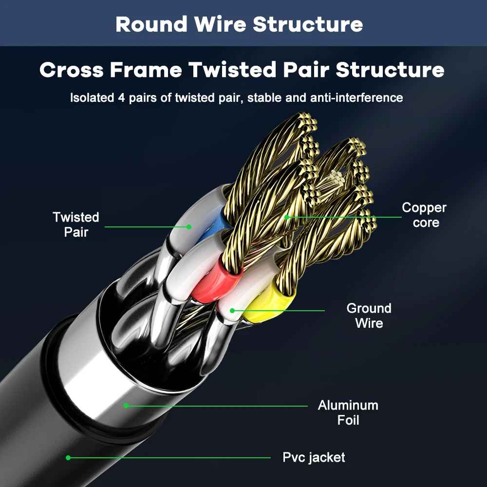 커넥터: RJ45 구리 쉘 금도금, 두꺼운 순수 구리 금도금 단자