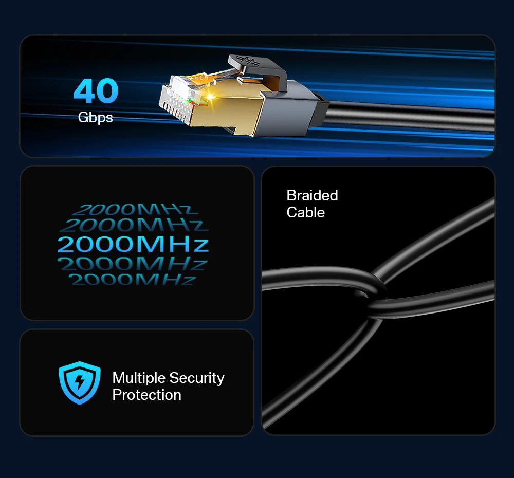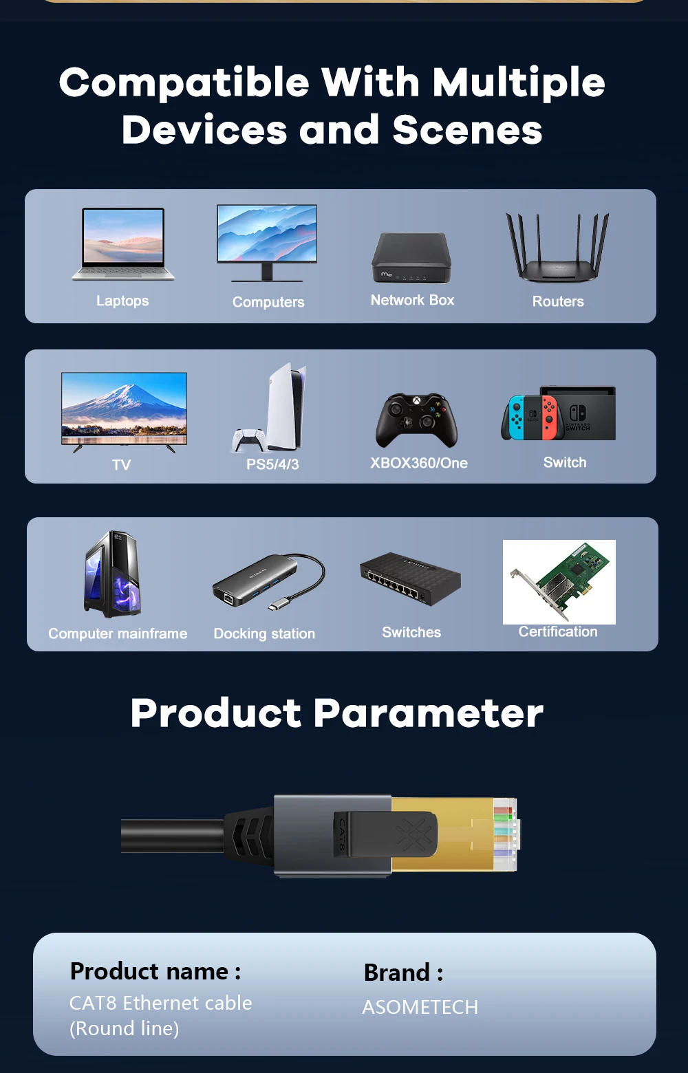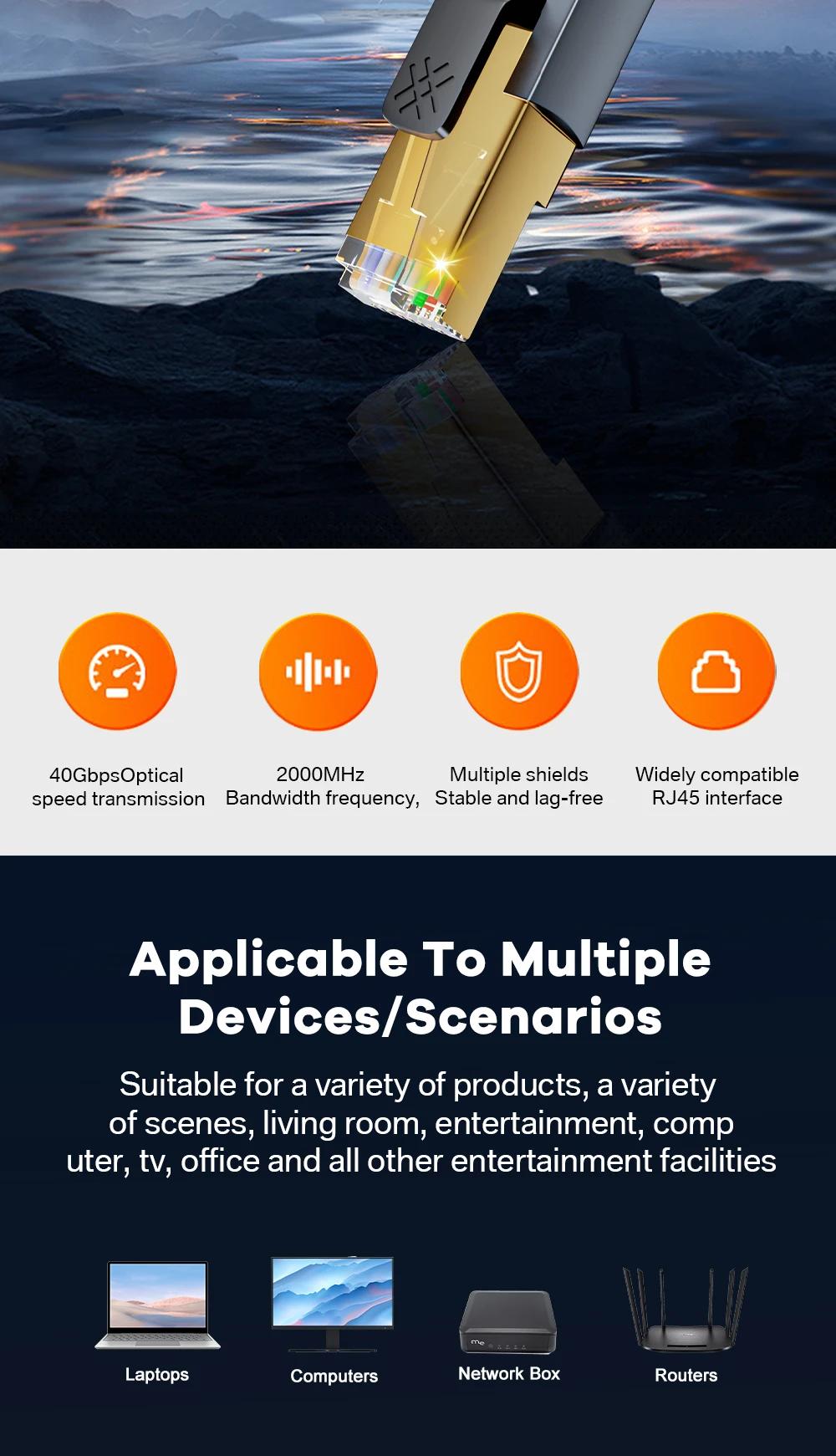 ????【넓은 호환성】 Cat8 이더넷 케이블 15 ft 는 네트워킹 스위치, IP 캠, 라우터, Nintendo 스위치, ADSL, 모뎀, PS4,X-box, 패치 패널, 서버 네트워킹 프린터, 넷기어, TP-링크, NAS, VoIP 전화, 커플러, 키스톤 잭, 스마트 TV, Imac 및 RJ45 커넥터가있는 기타 장치. 이더넷 케이블 cat 8 은 Cat7/Cat6e/Cat6/Cat5e/Cat5 와 완벽하게 호환 될 수 있습니다. 이 LAN 케이블 이더넷 코드는 데이터 전송의 신뢰성과 정확성을 향상시킵니다.