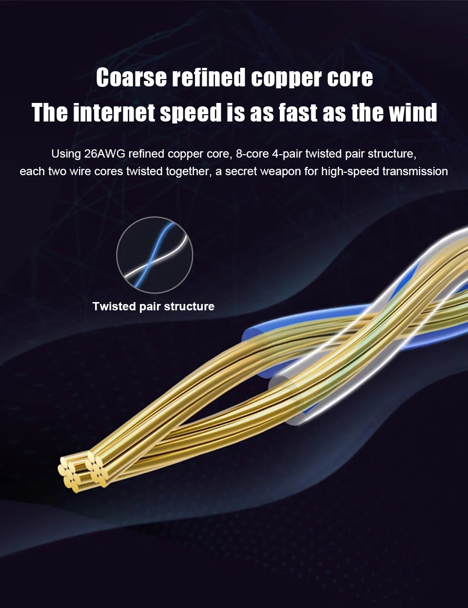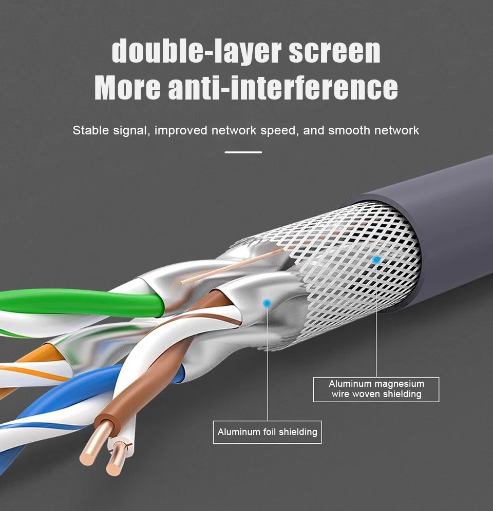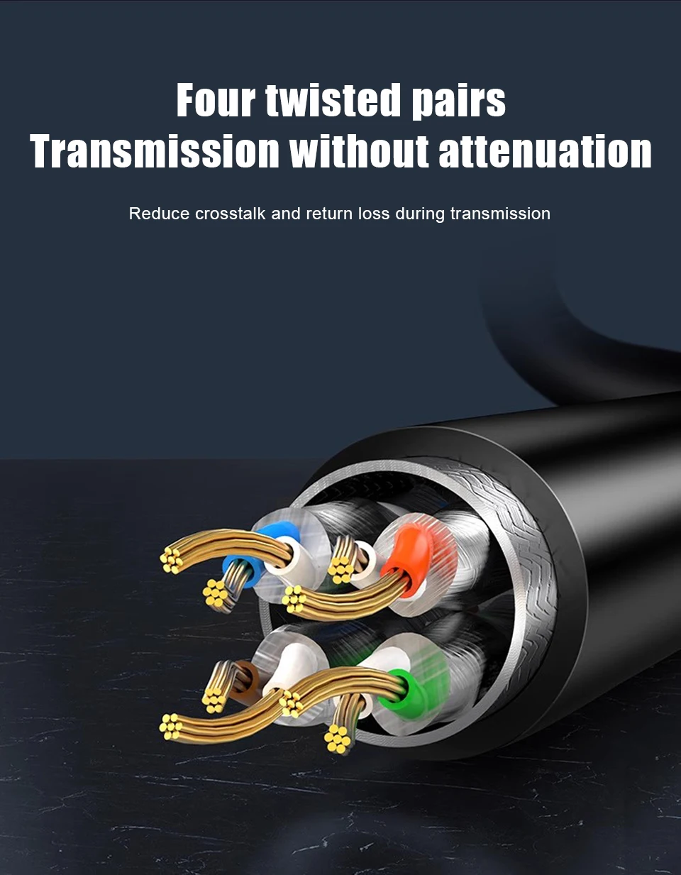 ? STP 기술:이 케이블에 사용 된 STP 기술은 네트워크 연결의 안정성과 신뢰성을 보장합니다.