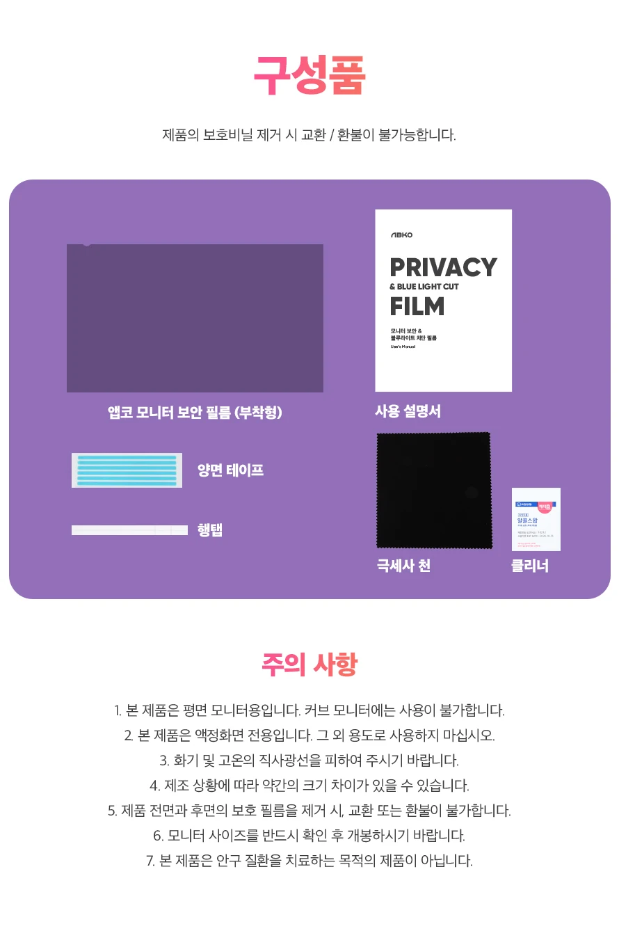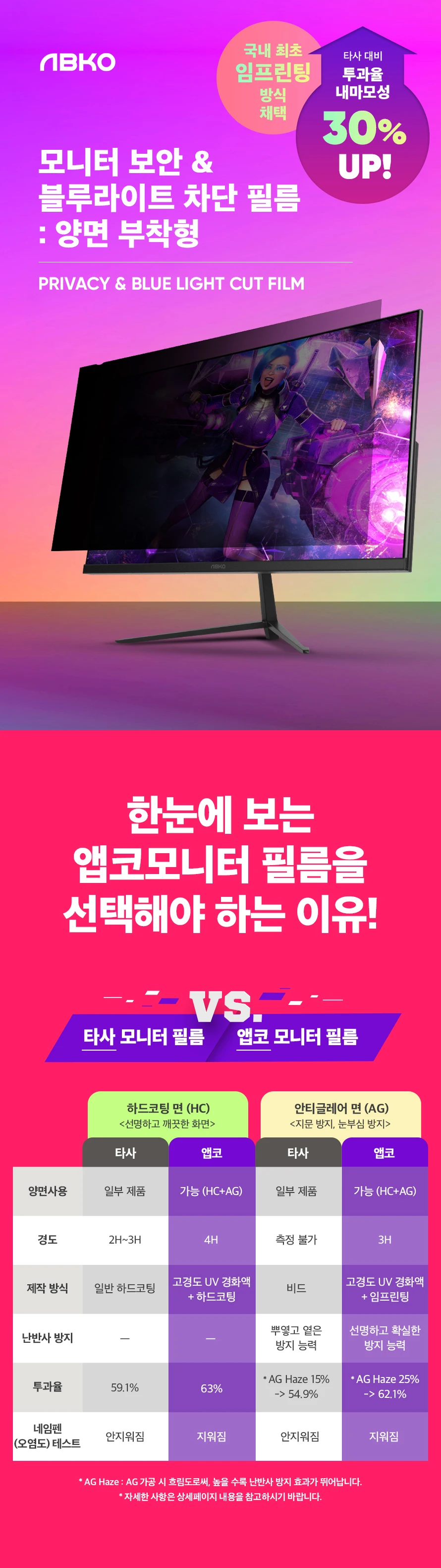 화면보호기필름 앱코 ABKO 모니터 양면 부착형 정보보안필름 IP-27W 169