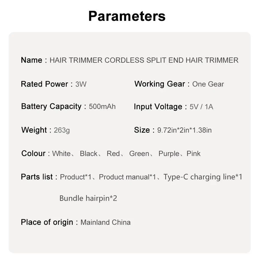 ? 헤어 스플릿 엔드 클리퍼:헤어 스플릿 엔드 클리퍼 기능으로 스플릿 엔드를 쉽고 정확하게 트리밍 할 수 있습니다. 이것은 머리카락의 건강과 외모를 유지하는 데 도움이됩니다.