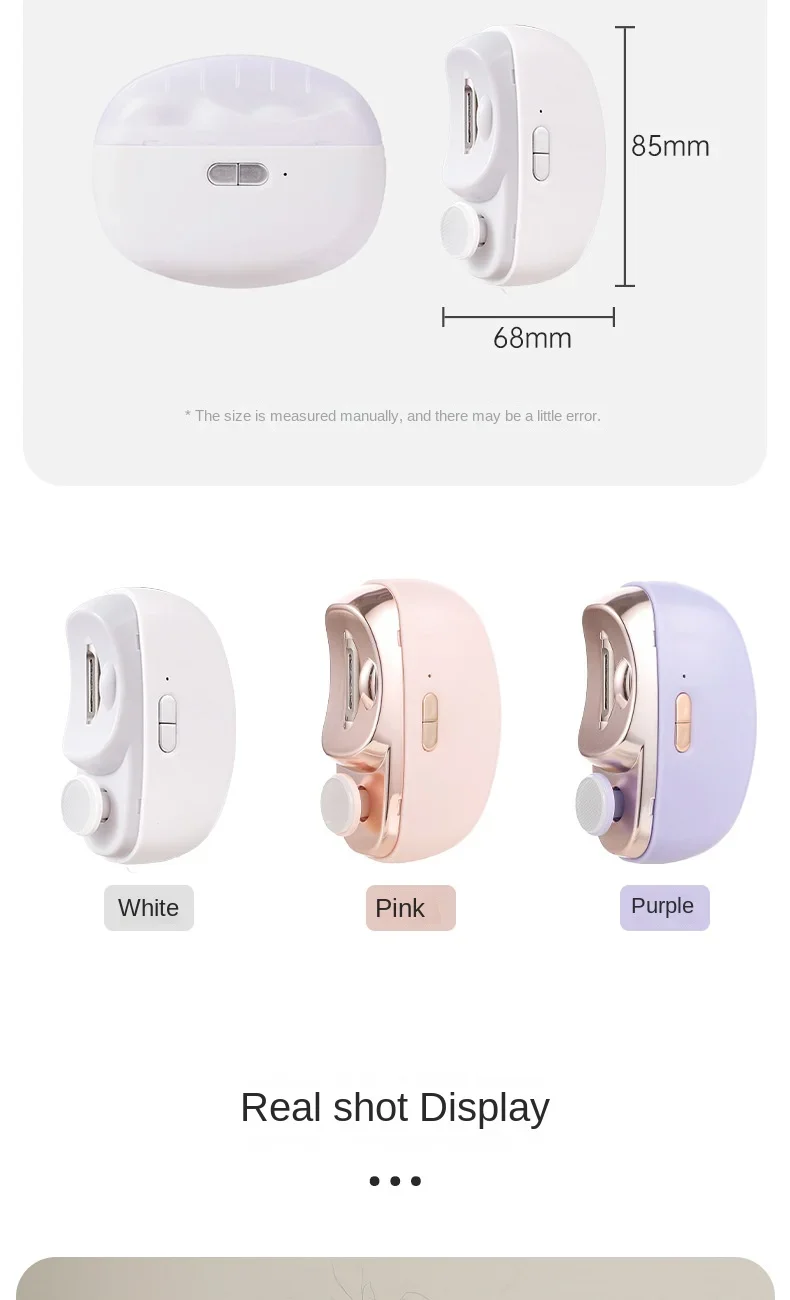 아기를위한 가벼운 손톱 절단기 및 광택기 USB 충전식 안전 손톱 트리머가있는 전기 자동 손톱깎이