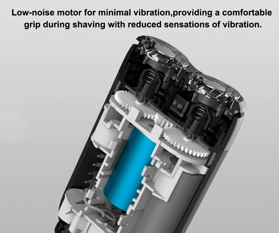 최소한의 진동을위한 저소음 모터로 진동 감각을 줄이고 면도 중에 편안한 그립을 제공합니다.