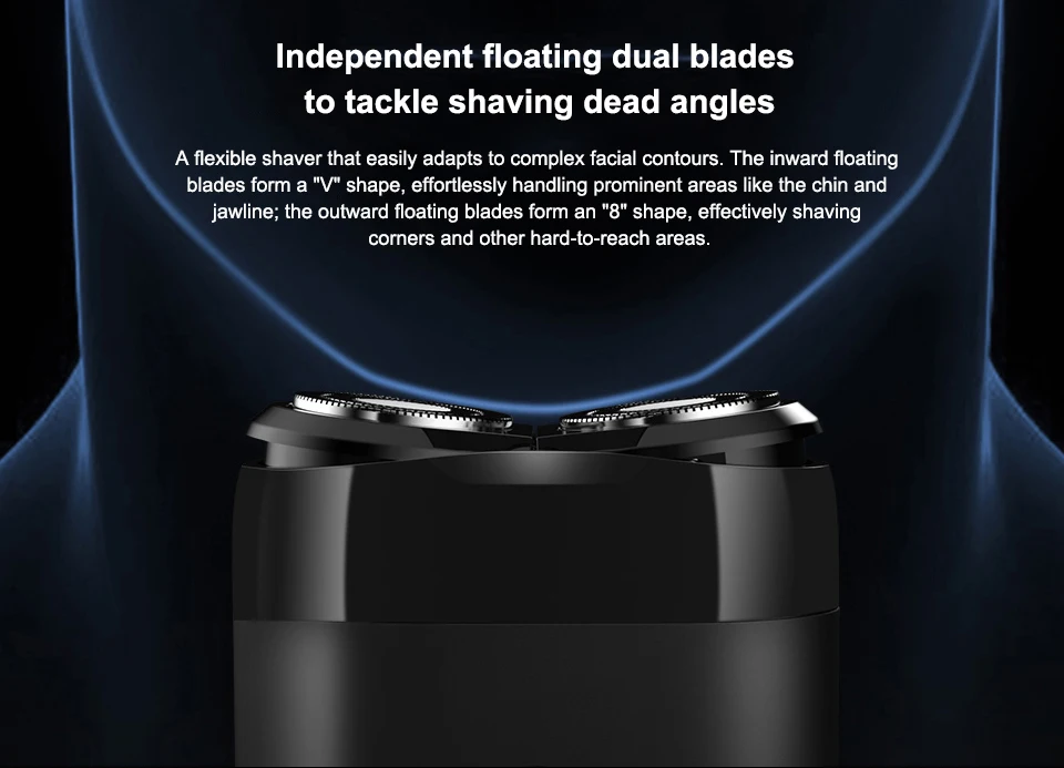 복잡한 얼굴 윤곽에 쉽게 적응하는 유연한 면도기. 안쪽으로 떠 있는 블레이드는 "V" 모양을 형성하여 턱이나 턱선과 같은 눈에 띄는 부분을 쉽게 처리합니다. 바깥쪽으로 떠 있는 블레이드는 "8" 모양을 형성합니다. 효과적으로 면도 모서리 및 기타 도달하기 어려운 영역.