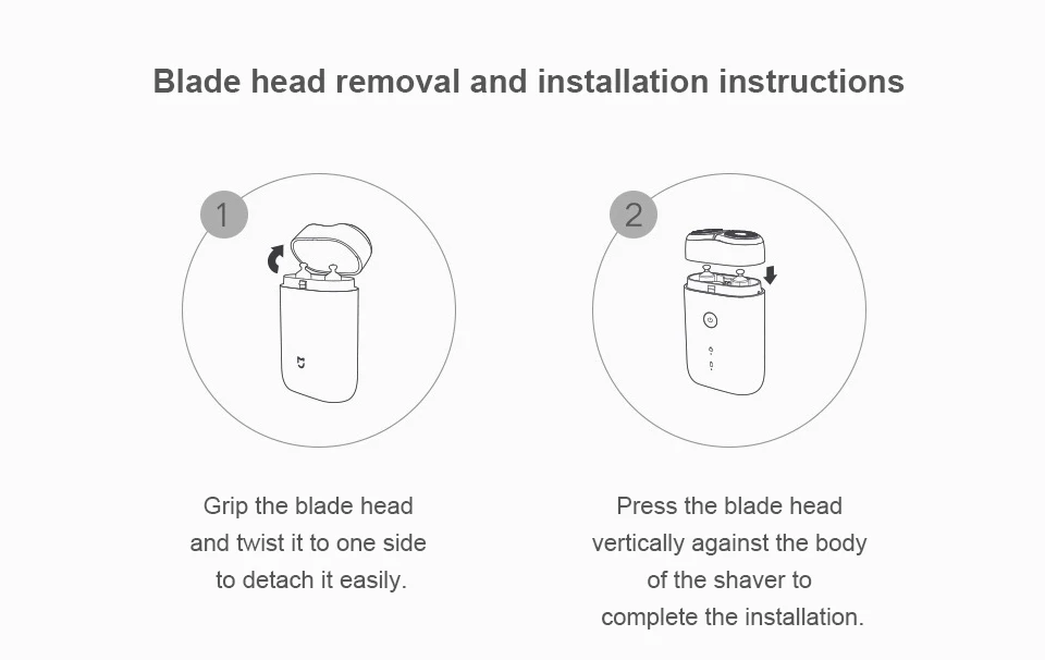 2. 블레이드 헤드를 면도기 몸체에 수직으로 눌러 설치를 완료하십시오.