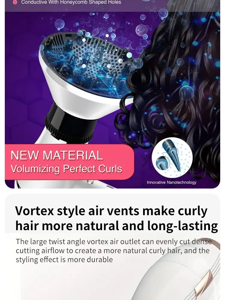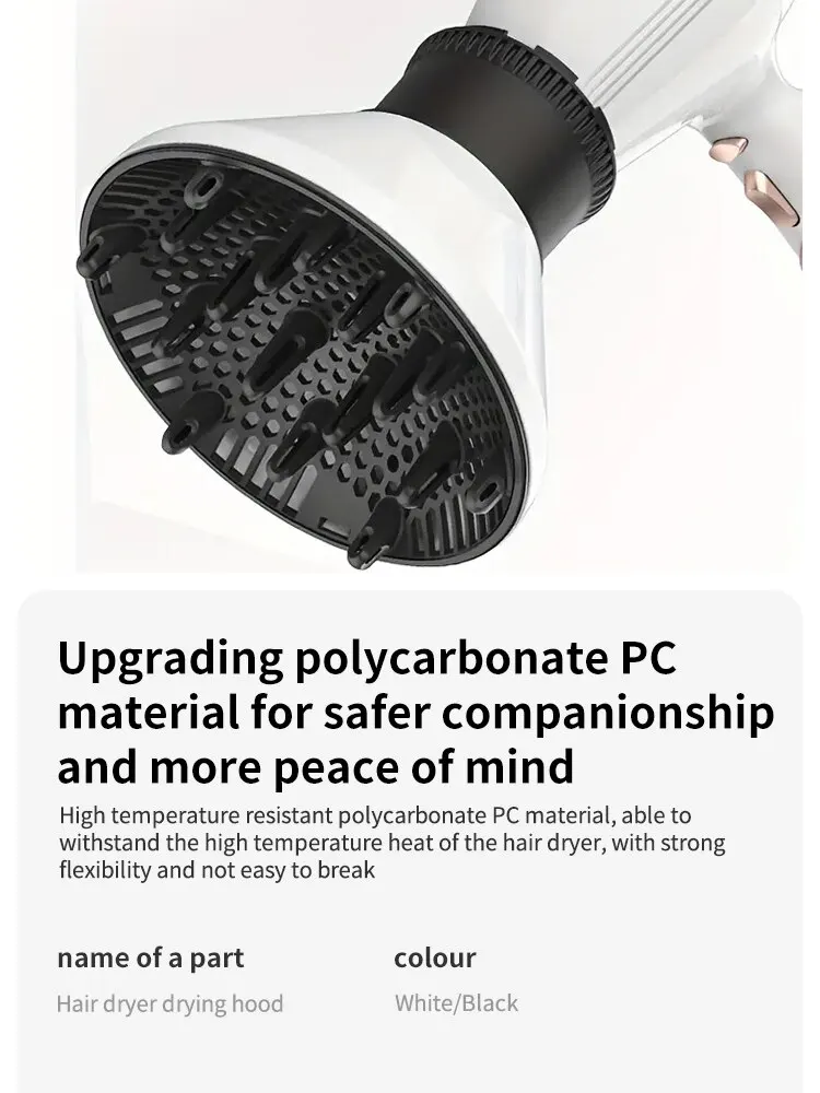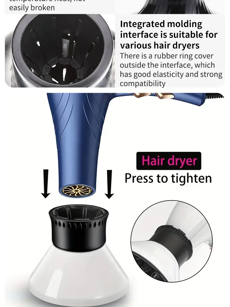 • 스타일링 컬 드라이어: 이 헤어 드라이어 디퓨저는 아름다운 컬과 파도를 만들어 머리카락에 다양한 스타일링 옵션을 제공하도록 설계되었습니다.
