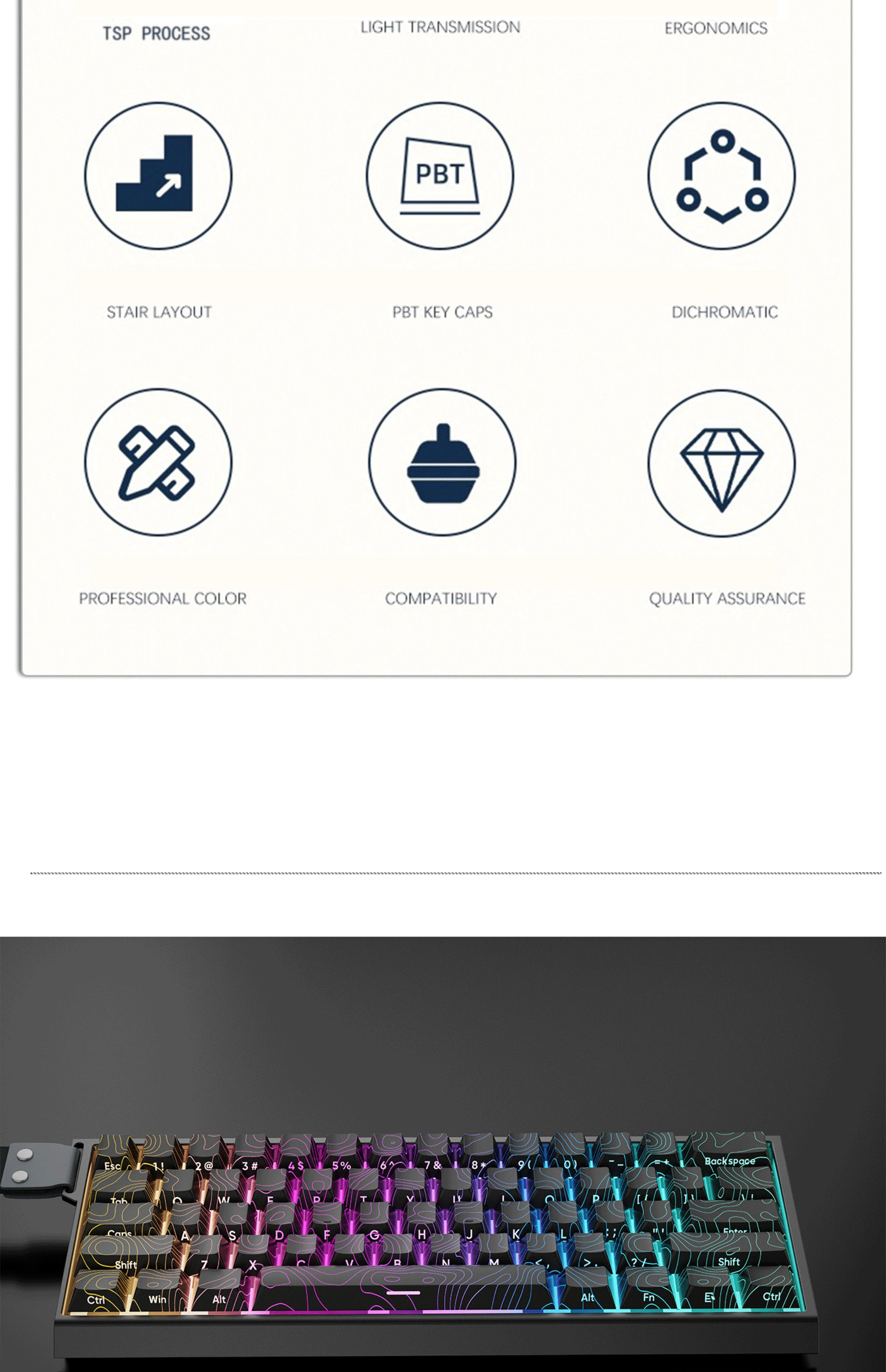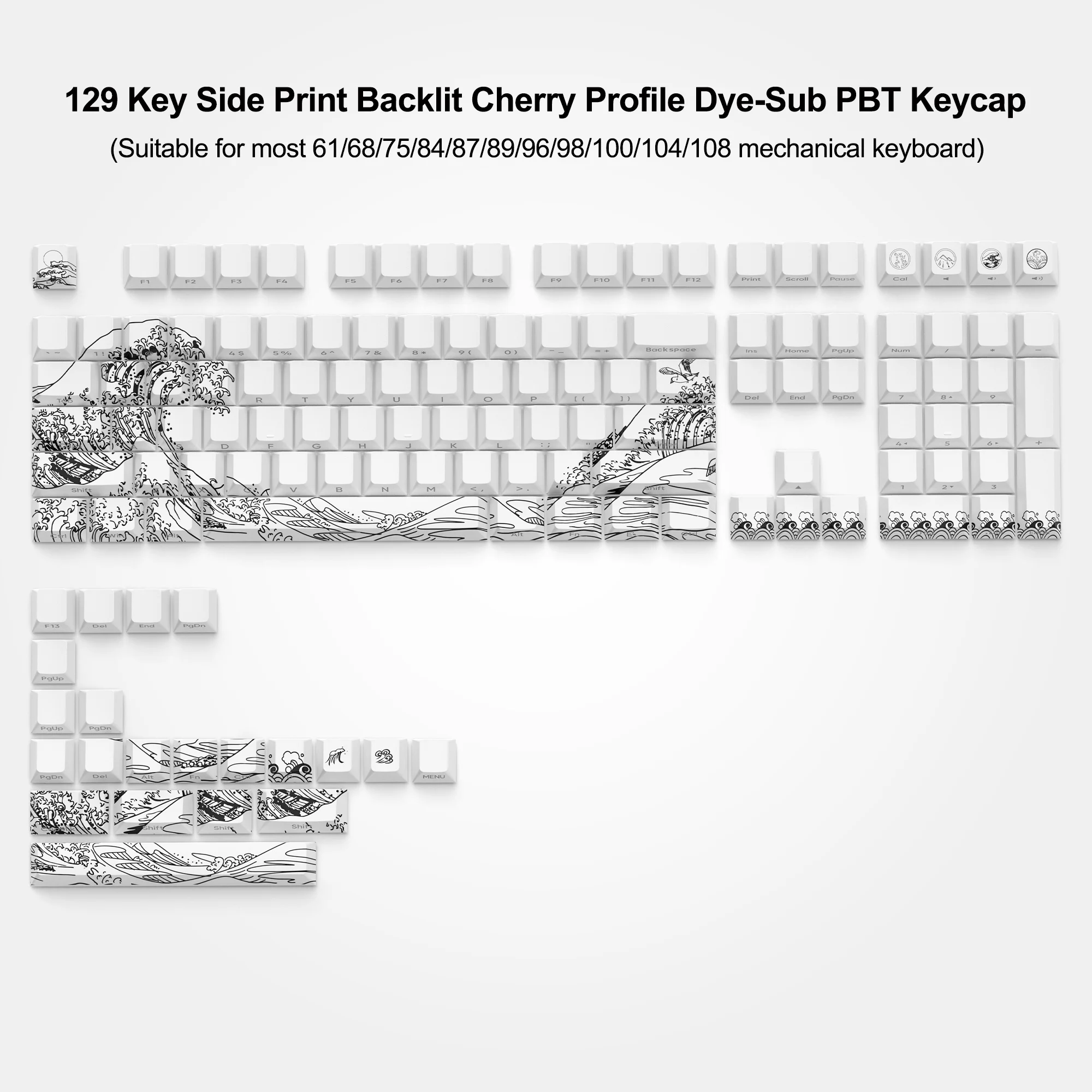 【DYE-SUB 백라이트 PBT 키캡】 일본의 키캡은 고급 5 면 염료 서브 공정을 채택하고 있으며 색상 패턴이 더 생생하고 오일이 없으며 절묘한 패턴은 키보드의 아트웍과 같습니다. 당신과 당신의 사랑하는 사람은 최고를받을 자격이 있습니다.