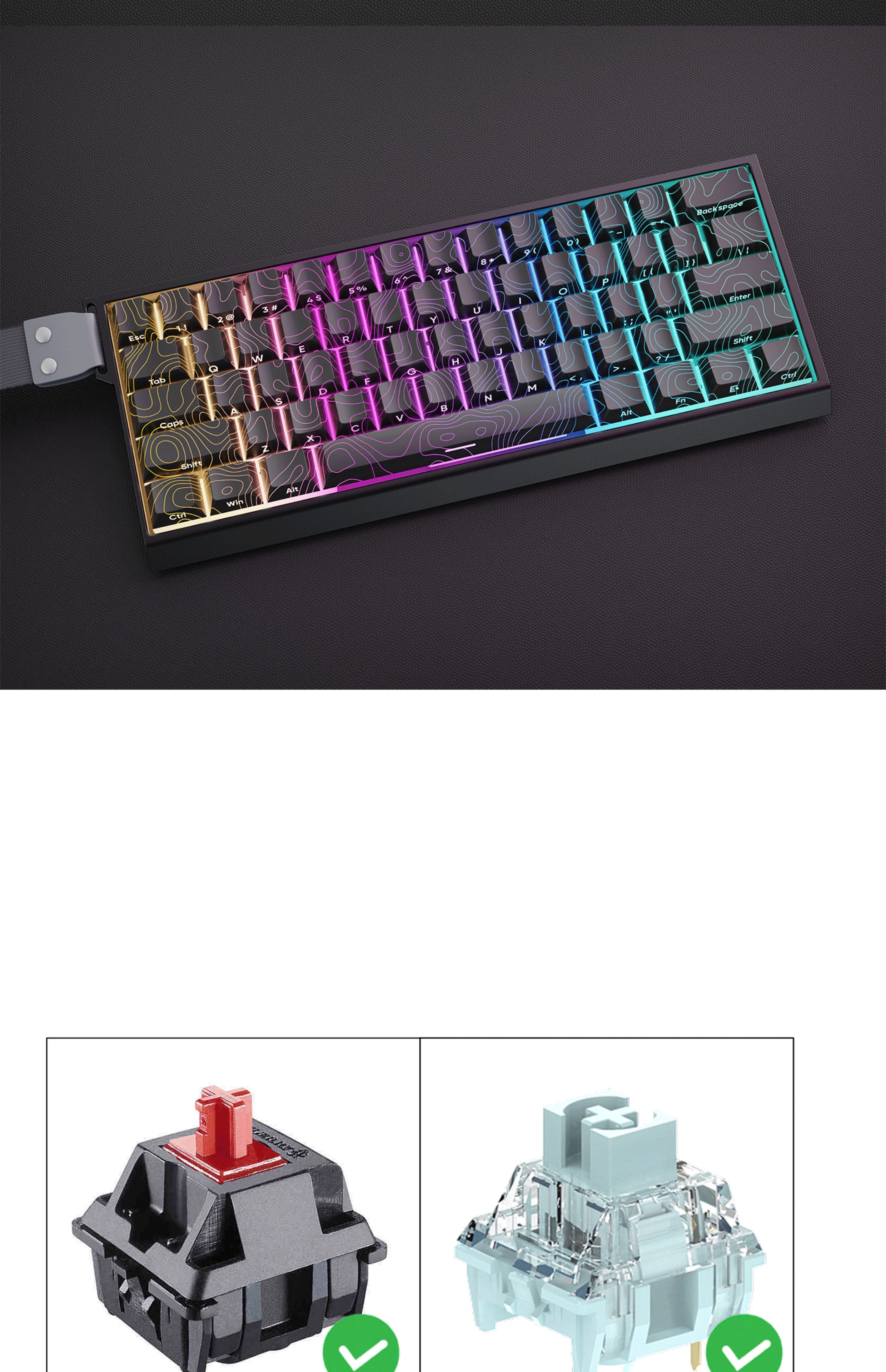 【체리 프로필 키캡】 최고의 타이핑 경험을 위해 설계된 클래식 체리 프로필로 설계된 키 캡. 직장이나 게임에서 오랫동안 사용하더라도 피곤하지 않습니다.
