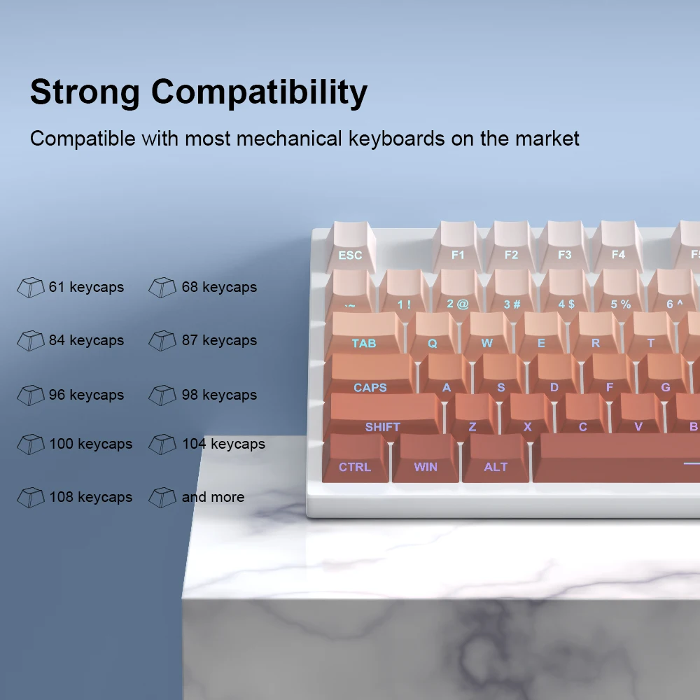 【고품질 PBT 소재】키캡은 고품질 PBT 키 캡과 그리스 방지 코팅으로 최고급 내구성과 뛰어난 타이핑 느낌을 제공합니다. 제로 광택 매트 표면은 abs 키 캡보다 오래 지속됩니다.