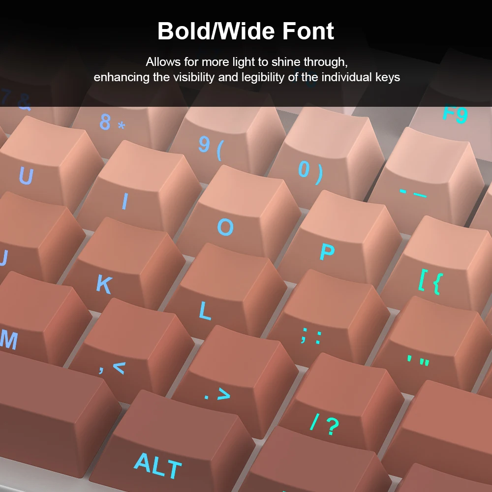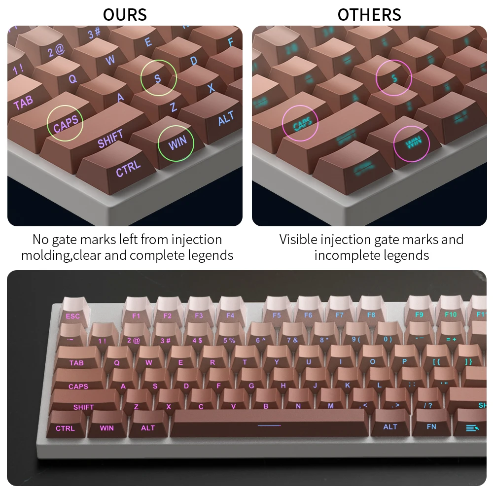 체리 프로필에 대한 그라디언트 PBT 키 캡 133 키 체리 MX 키보드에 대한 측면 새겨진 글꼴 듀얼 컬러 사출 몰딩