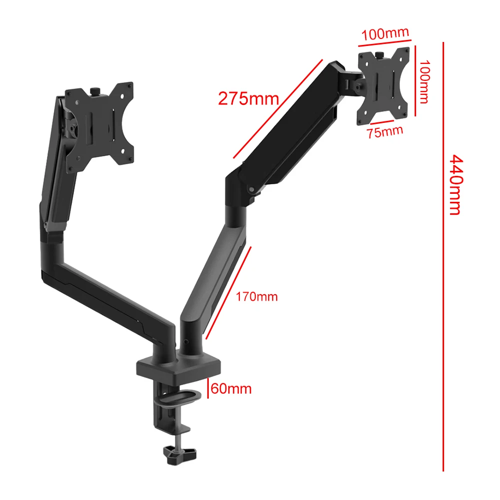 듀얼 모니터 스탠드 모니터 데스크 마운트(C 클램프 포함) 확장형 디스플레이 브래킷 13~32인치 컴퓨터 화면에 맞게 완전 조절 가능