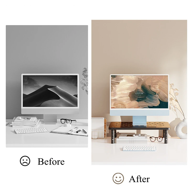 모니터 받침대 컴퓨터랍 조정 가능한 컴퓨터 스탠드 시야각 홀더 스트레스 릴리프 데스크탑 랙 사무실