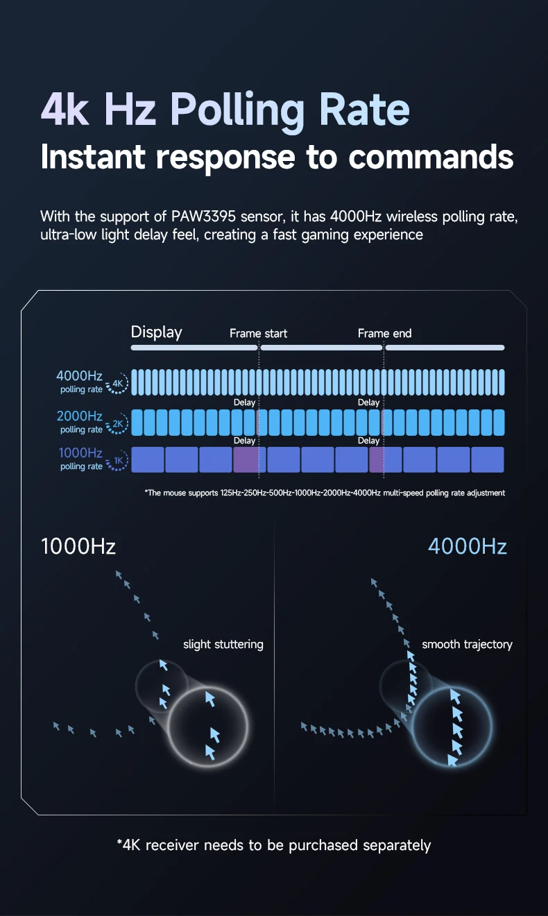 8K 모니터 및 240Hz 디스플레이에 적합한 4000Hz 폴링 속도.