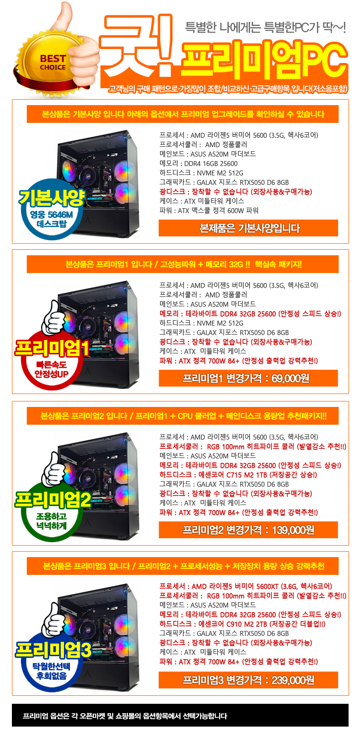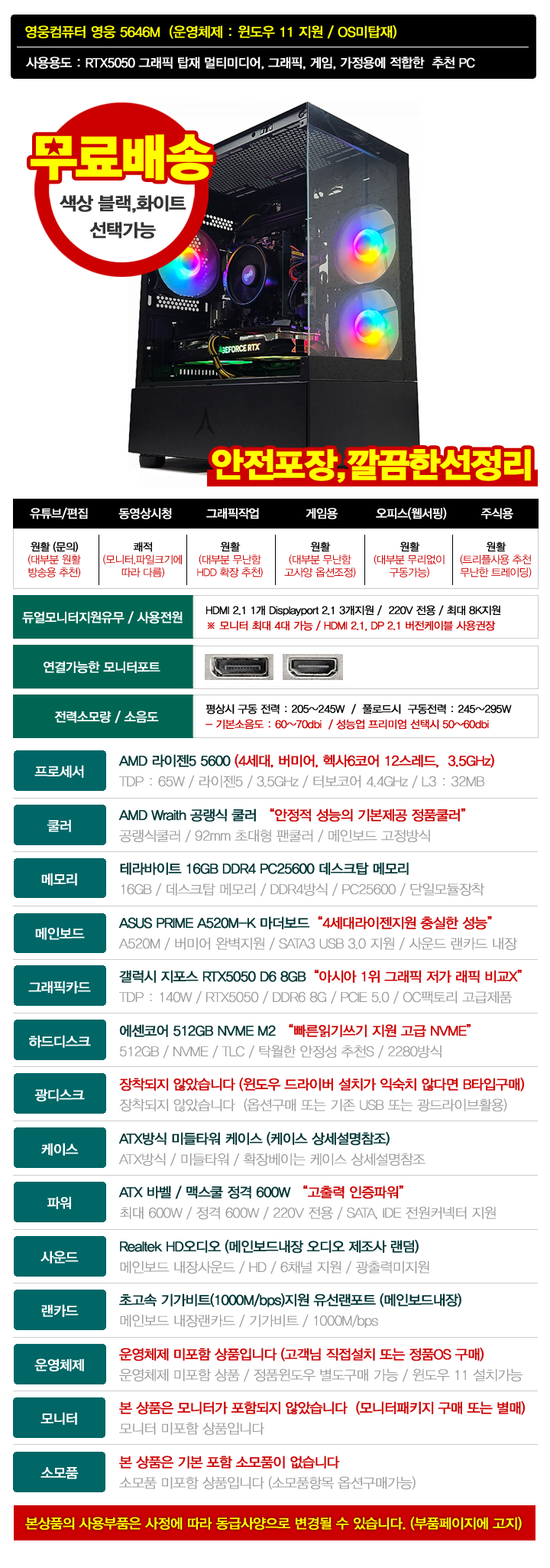 영웅 게이밍프로 5646M (게임은 5600 16GB NVME 512G RTX5050 8GB 디아4 조립컴퓨터 본체)