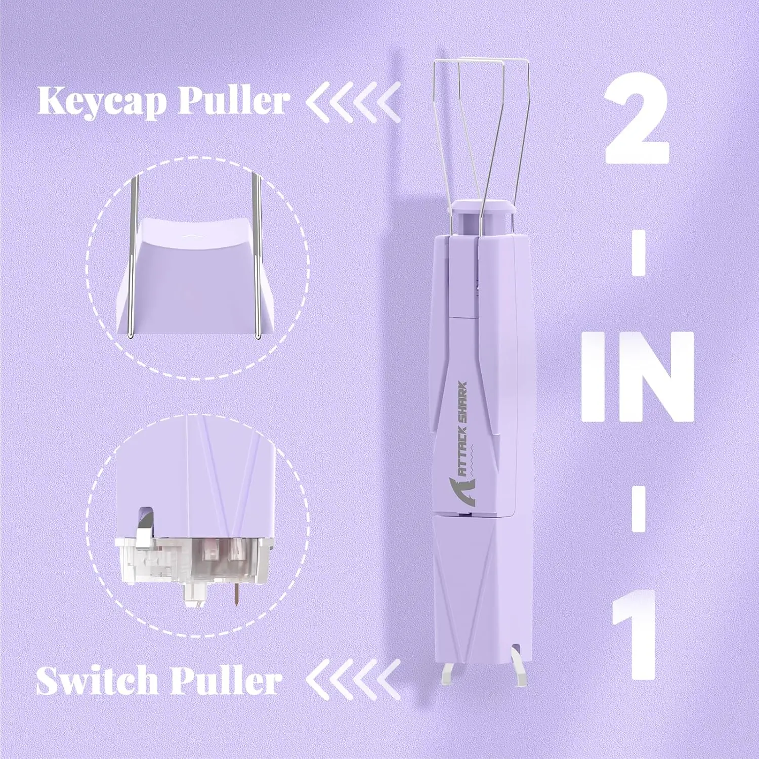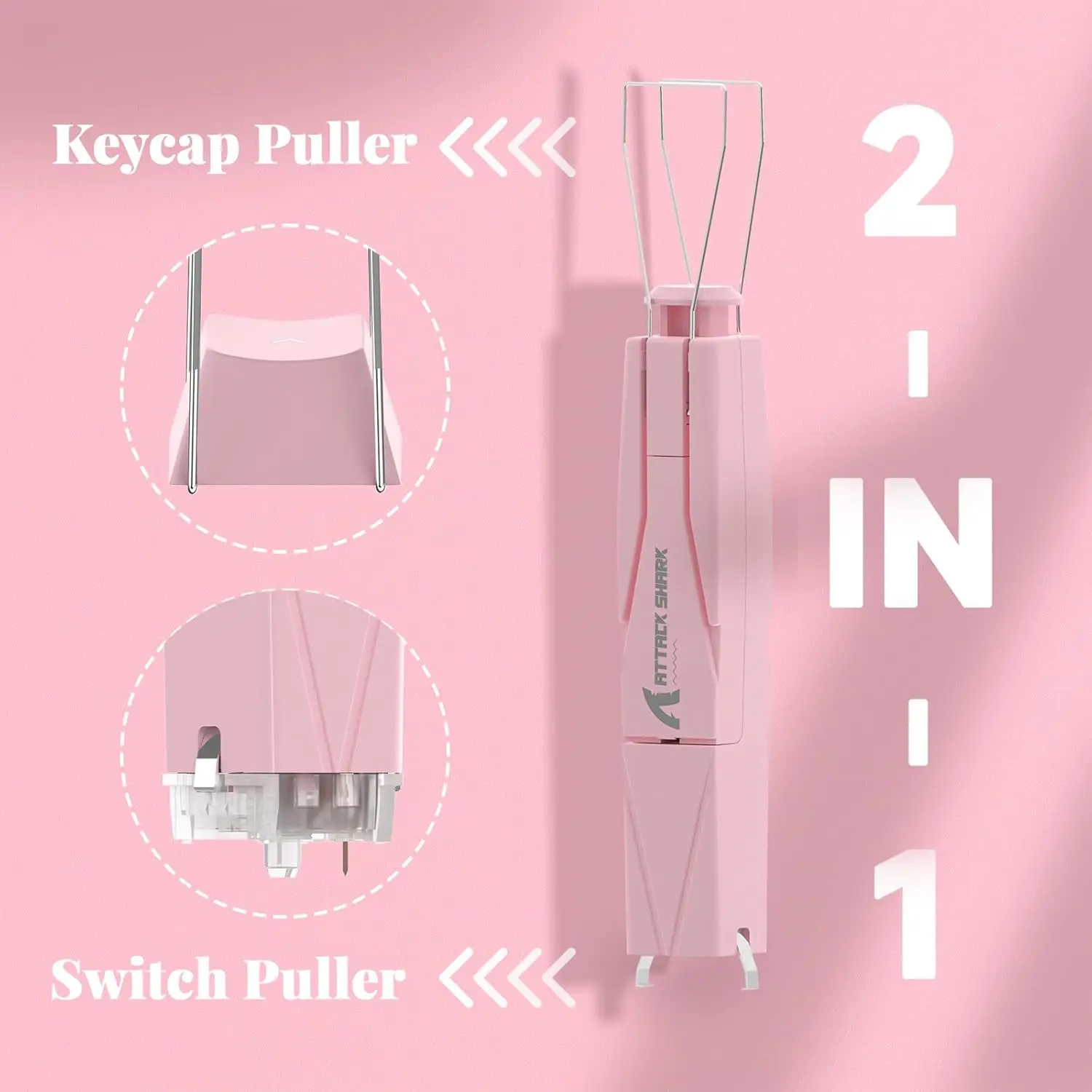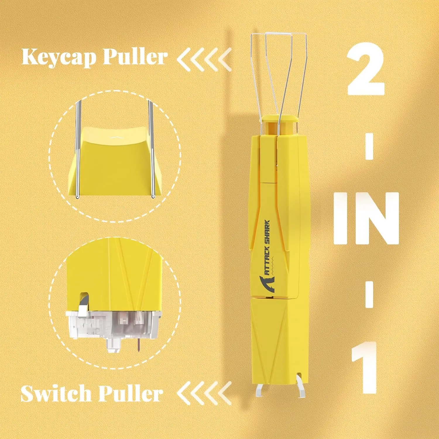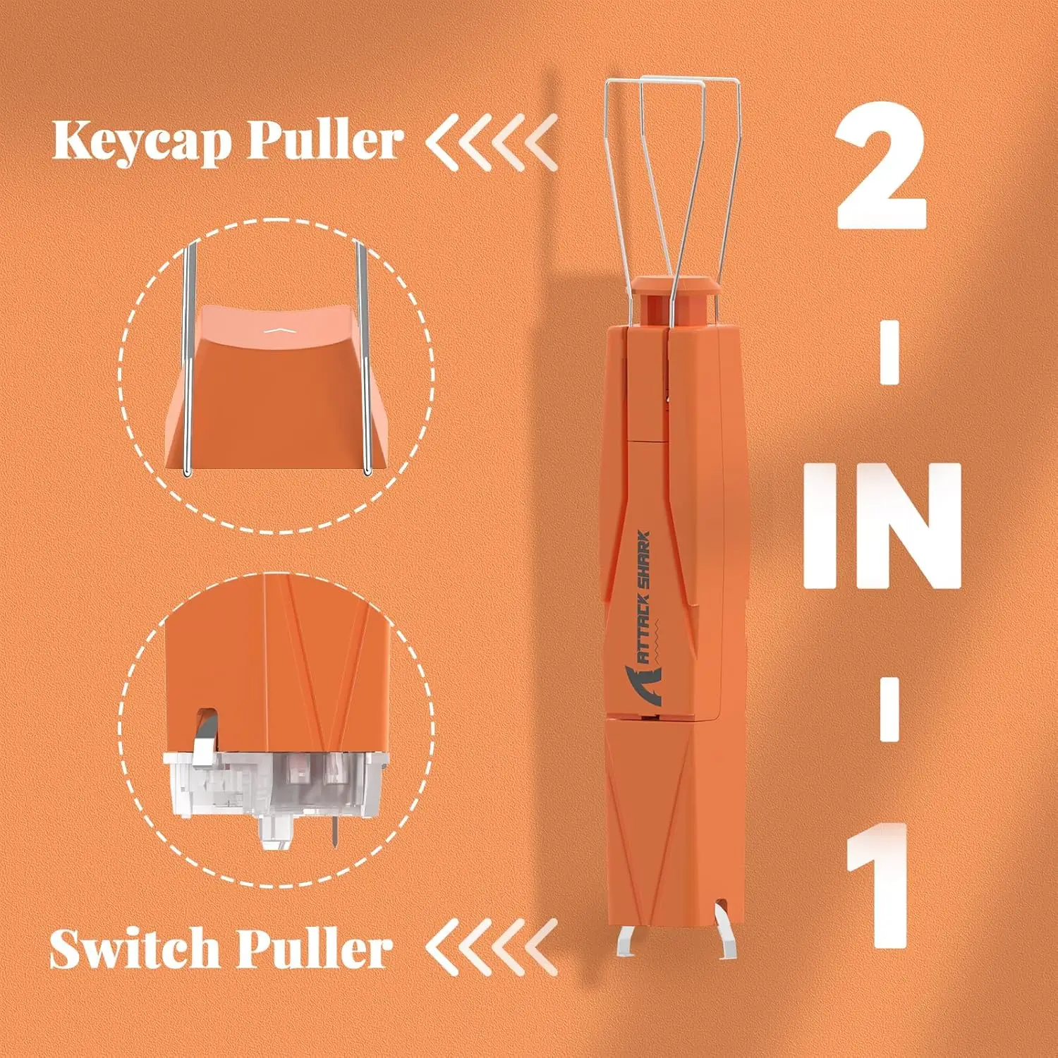 한쪽 끝에는 2 개의 조절 가능한 304 스테인레스 스틸 와이어가 있으며, 다른 쪽 끝에는 튼튼한 망간 스틸이 있습니다. 편안한 그립을 위한 독특한 사각형 모양의 디자인으로 녹이 슬지 않는 툴로 키캡과 스위치 추출을 쉽게 할 수 있습니다.