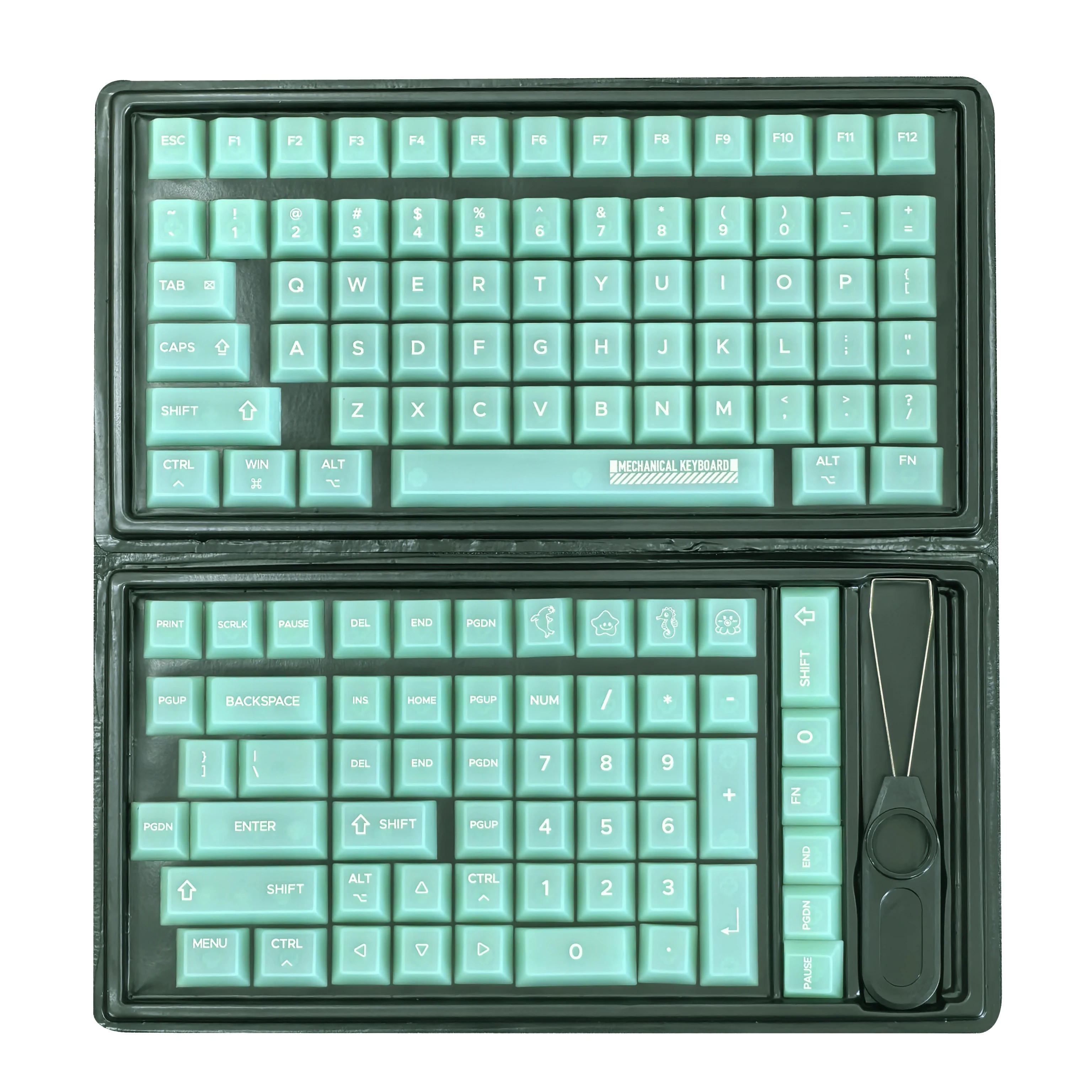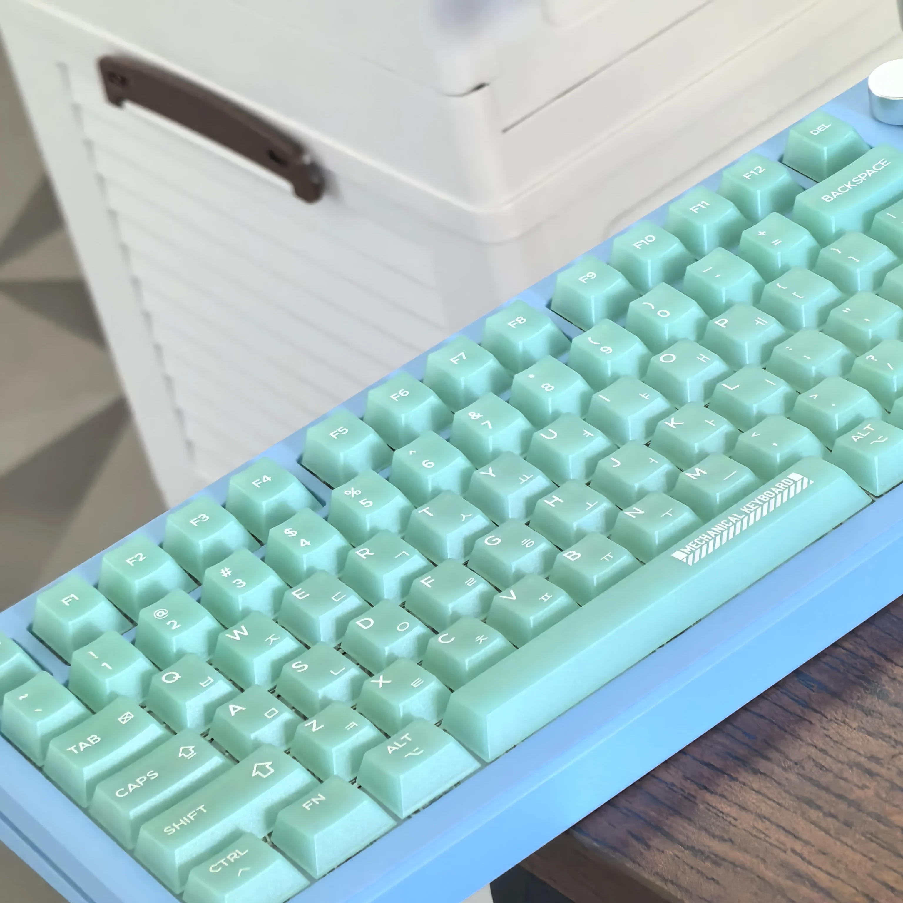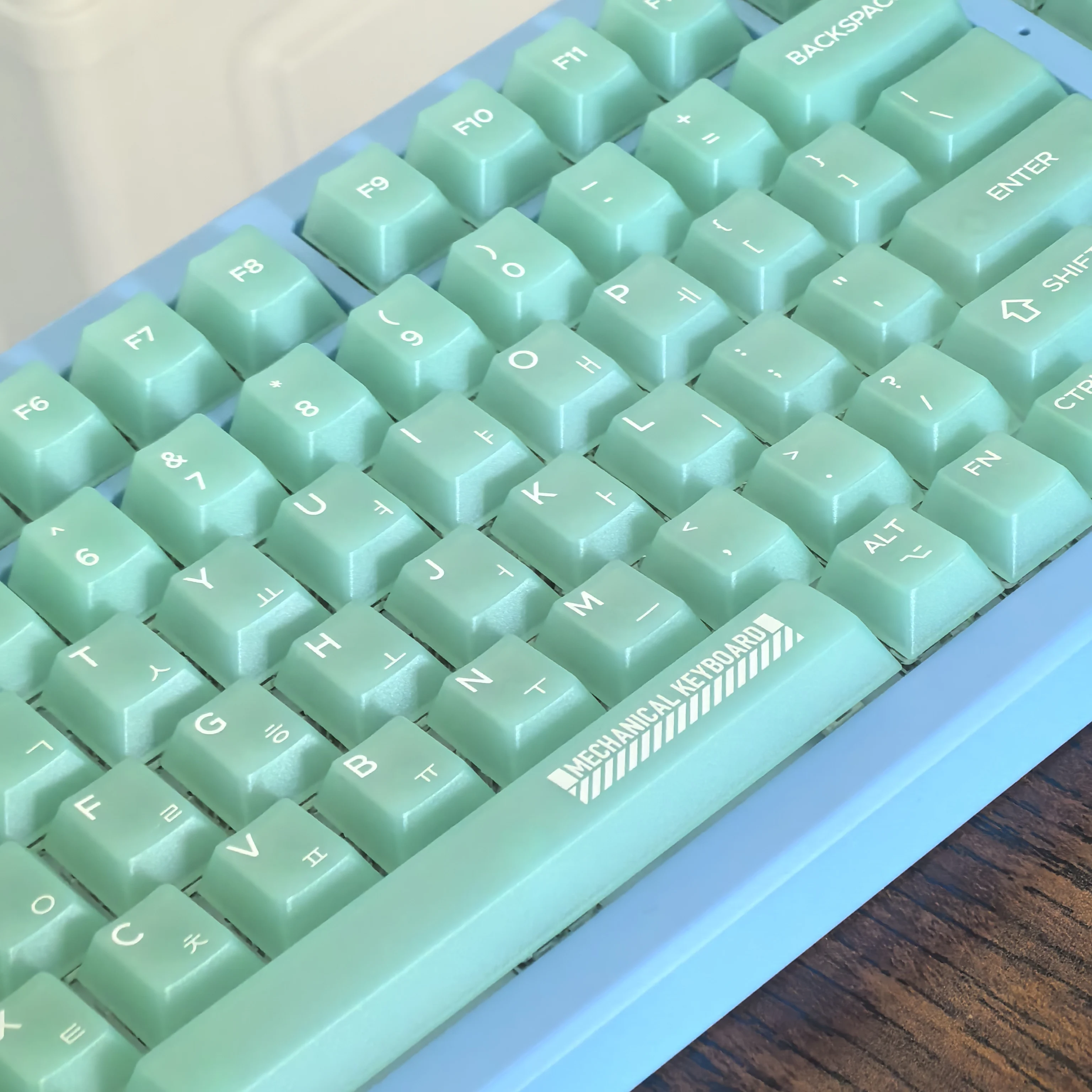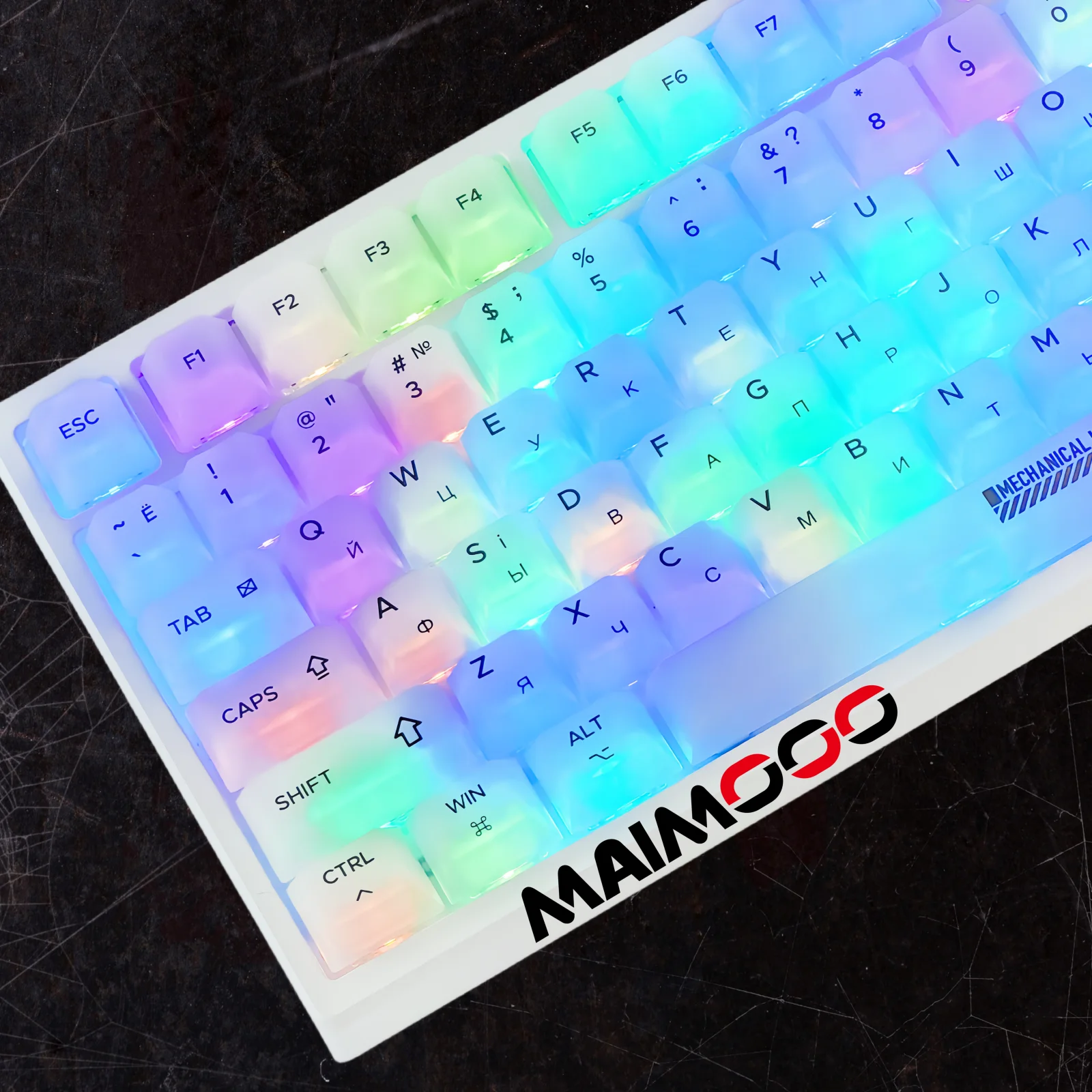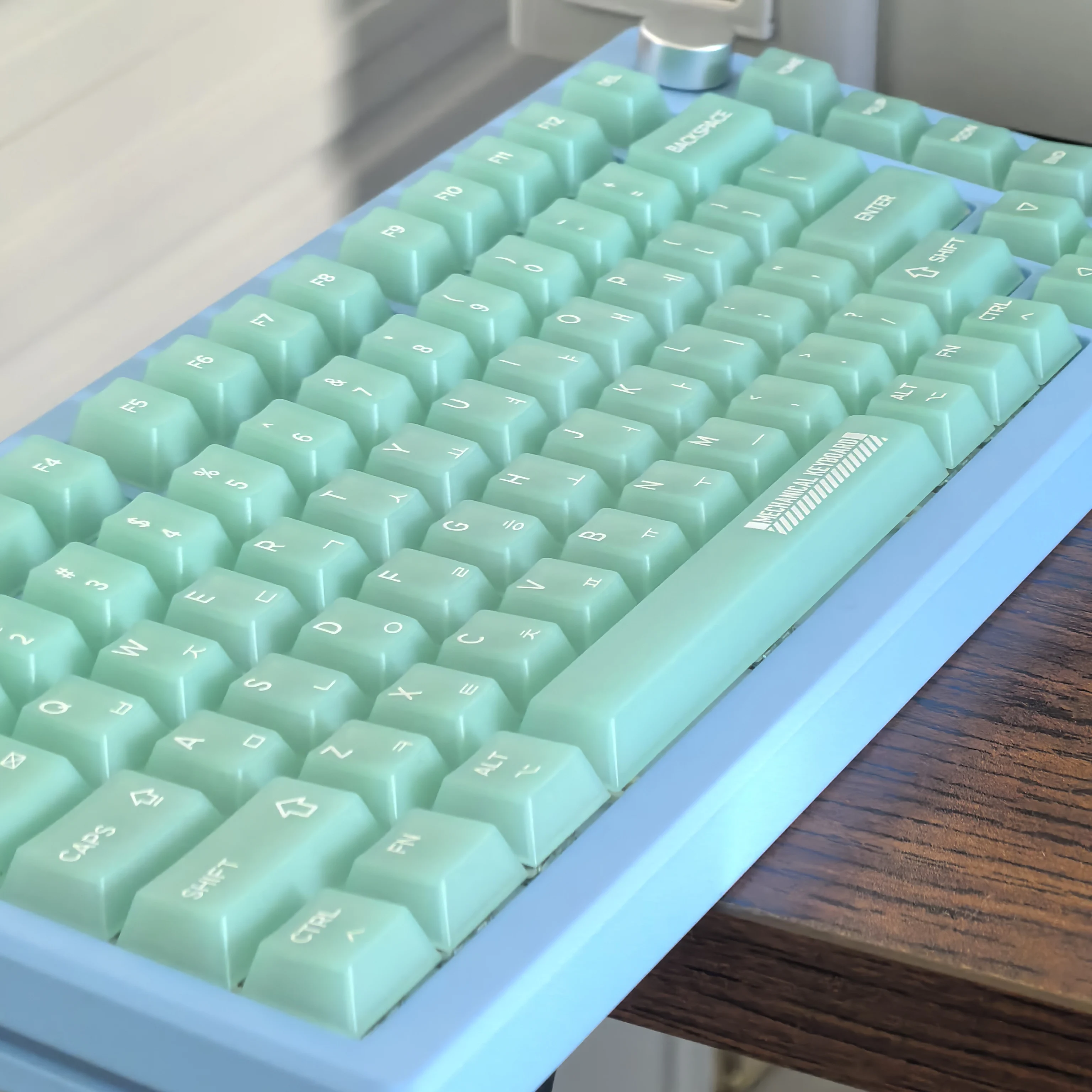 측면 새겨진 키 캡 실제 샷 조명 효과 사진