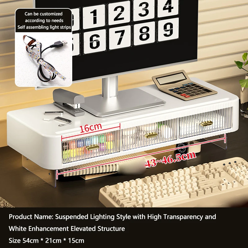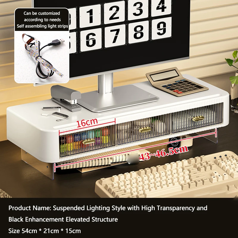 1. 편안함 향상: 이 컴퓨터 모니터 받침대는 탁상용 선반으로 사용하여 시각적 높이를 향상시키고 목과 어깨의 피로를 줄여 작업 및 학습 효율성을 향상시킬 수 있습니다.