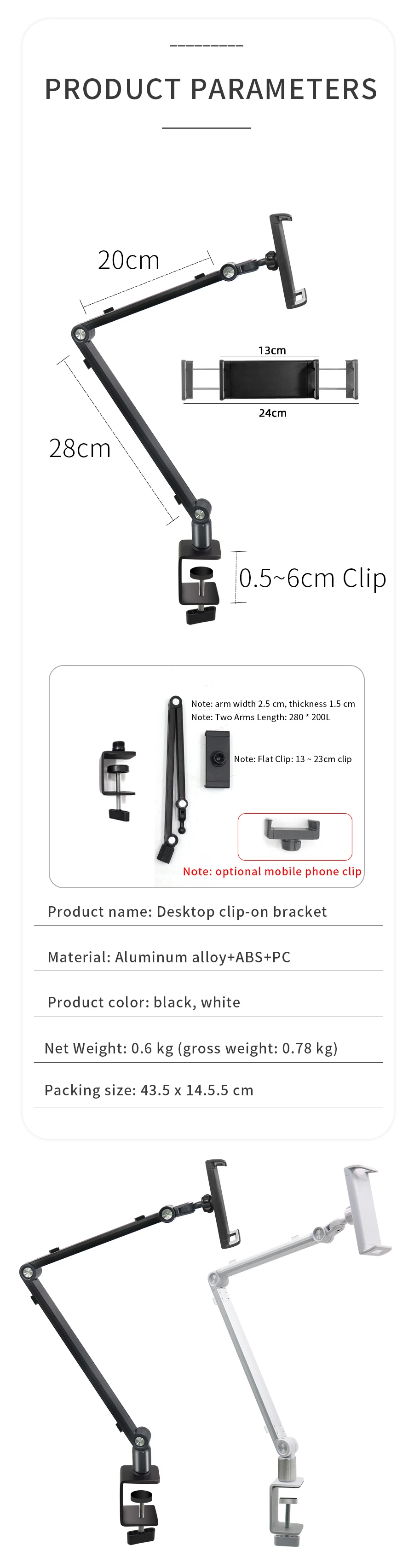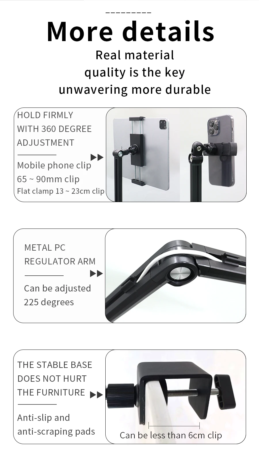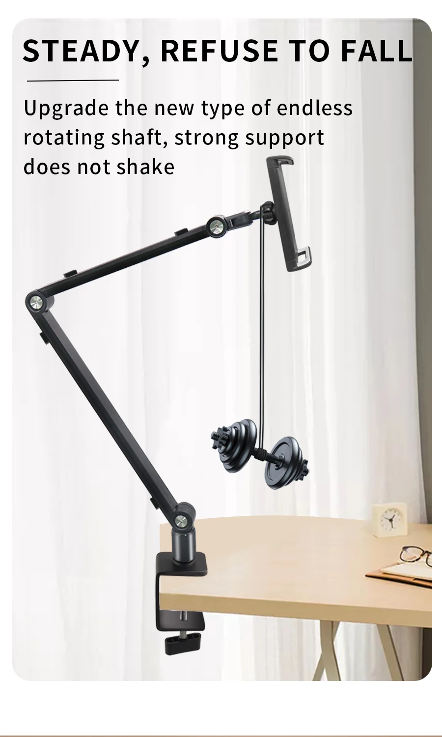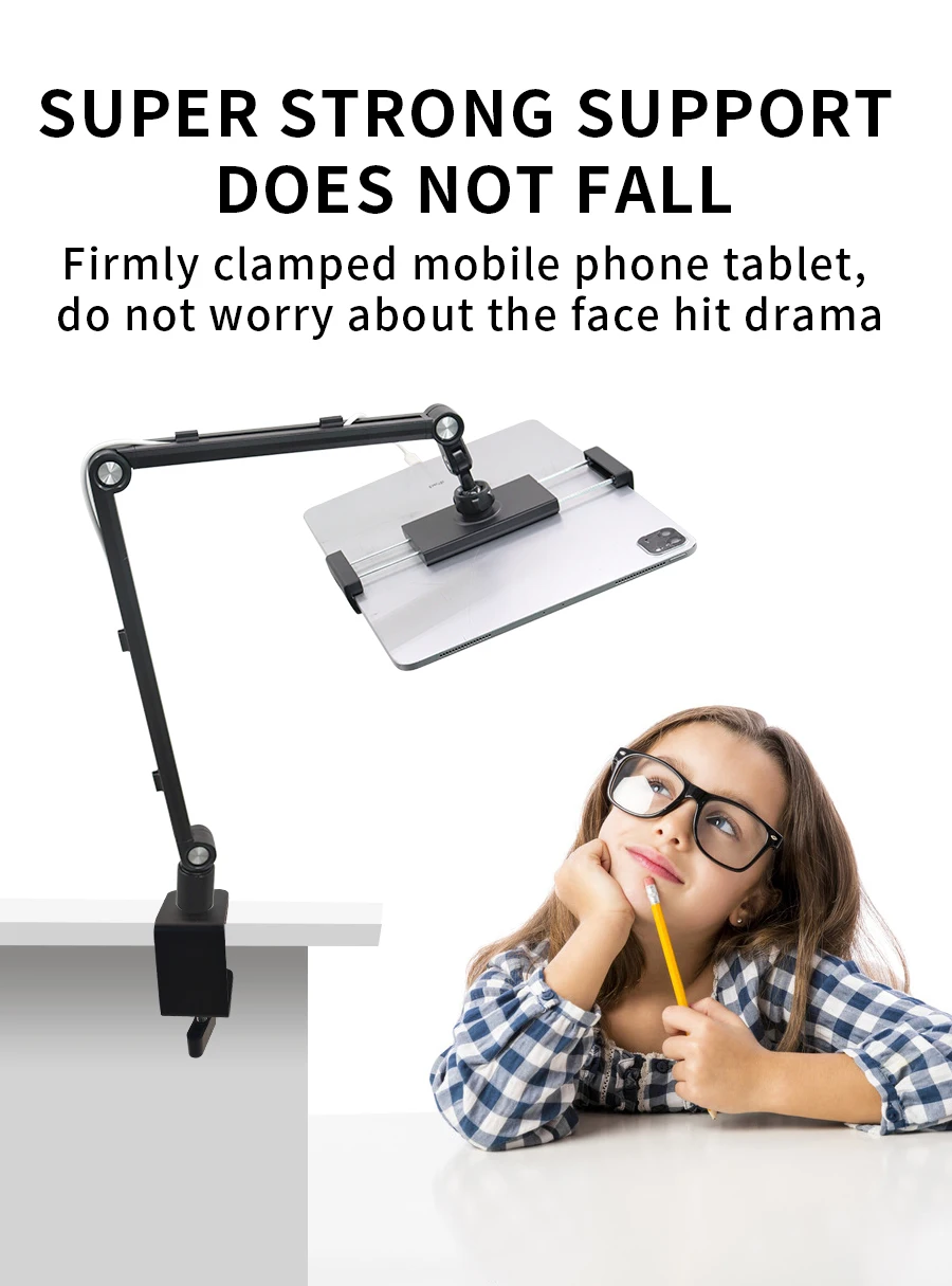 -이 태블릿 데스크 마운트는 고강도 금속으로 만들어졌으며 장시간 사용하거나 화면을 클릭 할 때 느슨해 지거나 흔들리지 않습니다.
