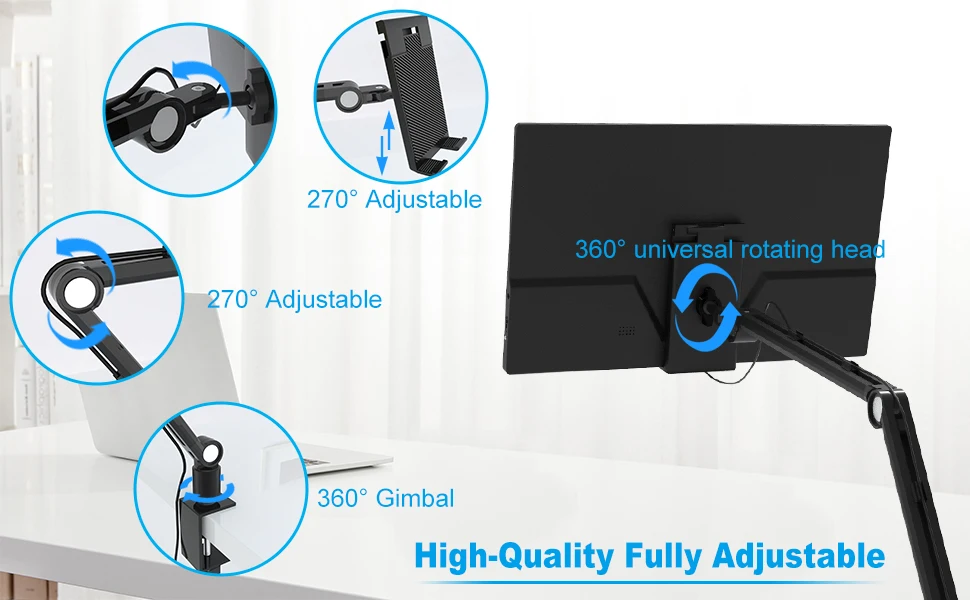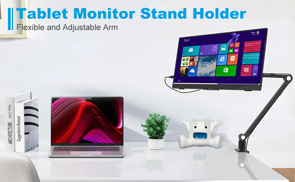 -휴대용 모니터 데스크 마운트는 iPad, 태블릿, 킨들, 휴대용 화면과 같은 4-12.9 인치 장치와 호환됩니다.