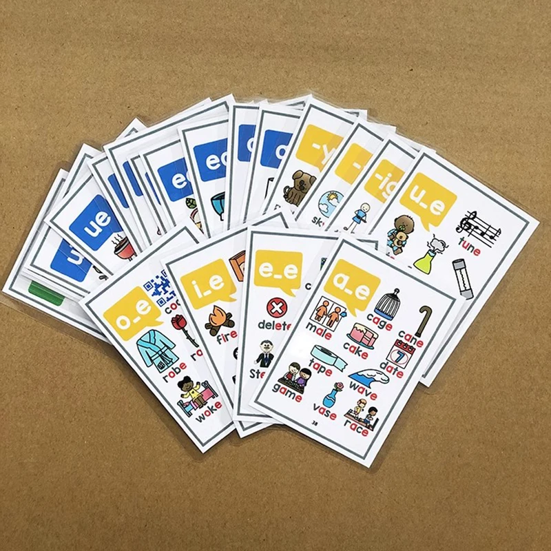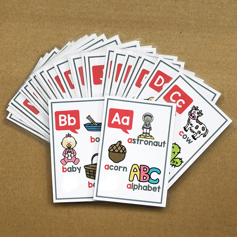자연 철자 파닉스 카드 영어 발음 규칙 어린이를위한 플래시 카드 26 글자 CVC 단어 교사 교재