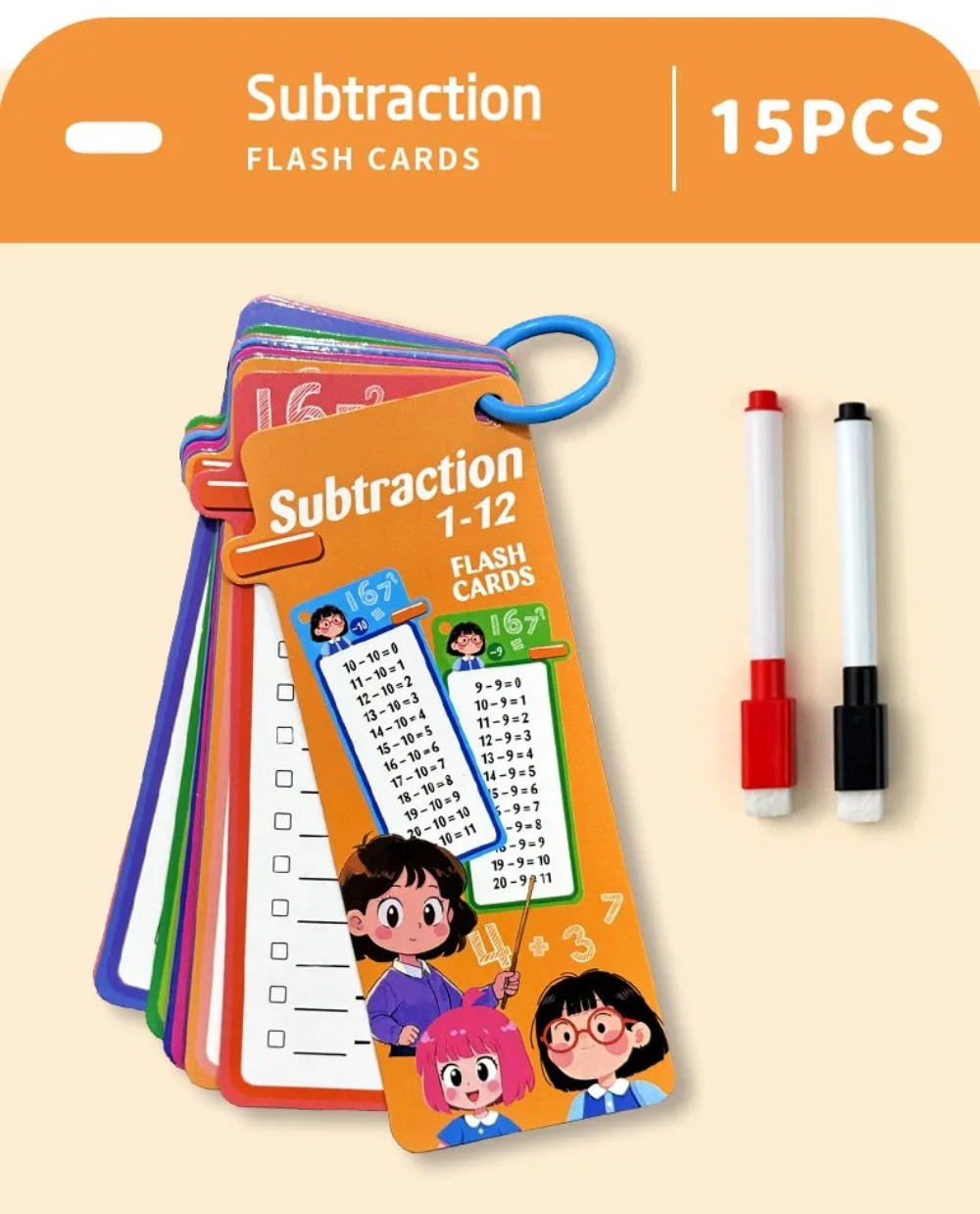 15PCS 15 카드 수학 훈련 연습 재사용 가능한 학습 Flashcards 지울 수 교육 테이블