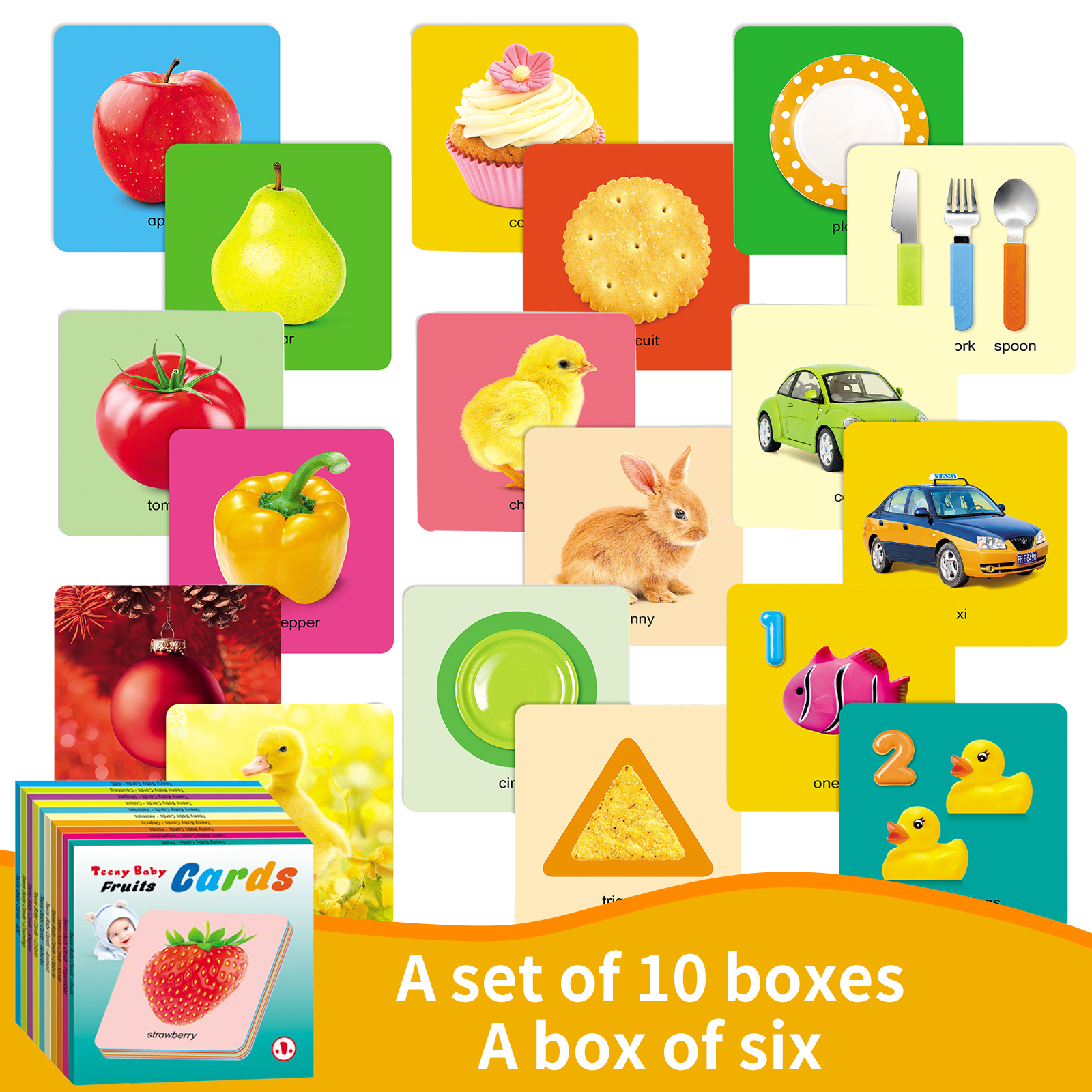 유아용 알파벳 플래시 카드 6 개의 애니메이션 책 한 상자 숫자 배우기 색상 모양 교육 장난감