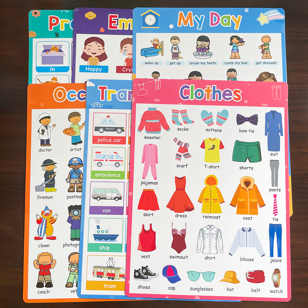 스타일 E: 6 테마 세트-옷/나의 하루/전치사/직업/교통/감정