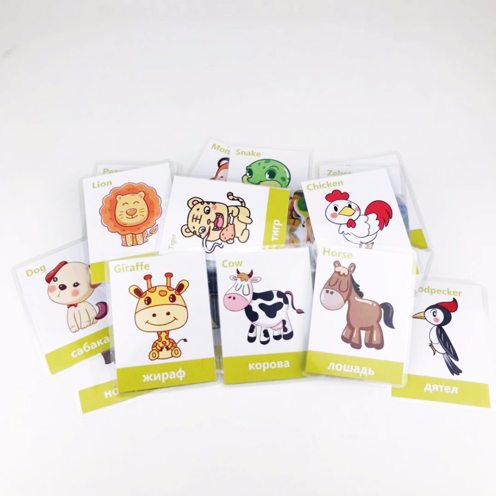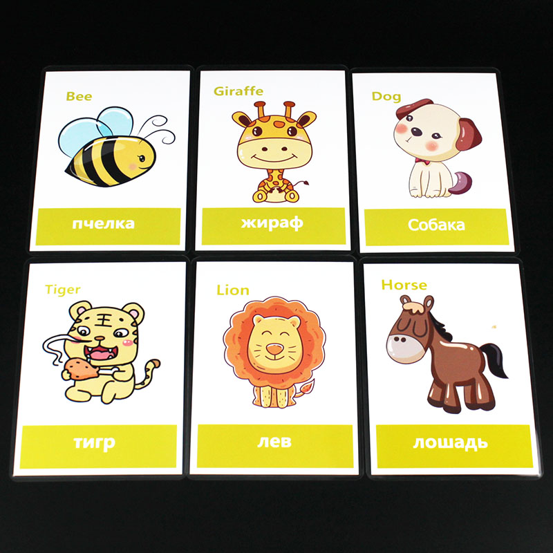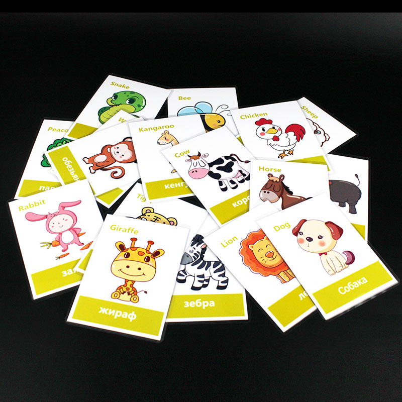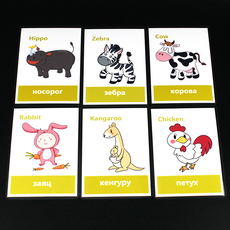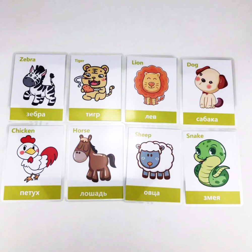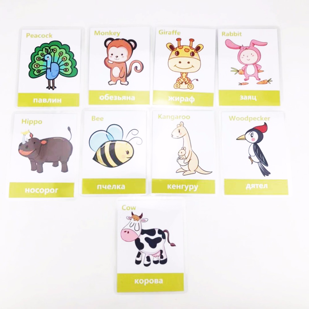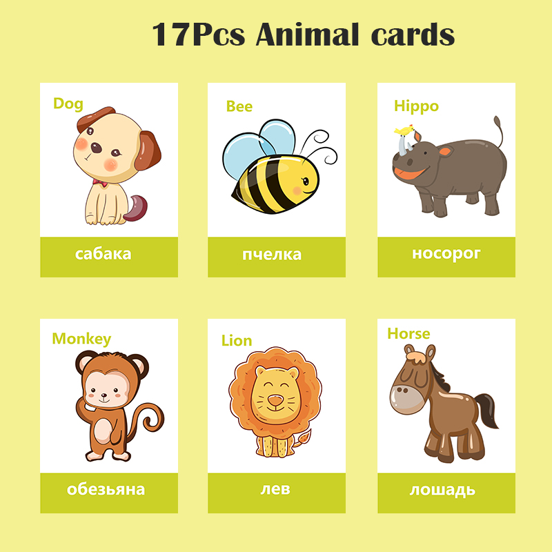 17PC 러시아 동물 기린 영어 학습 단어 카드 영어 학습 카드 조기 교육 어린이 게임 단어 포켓 카드