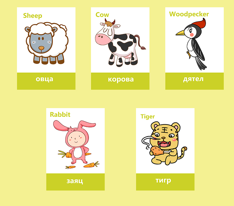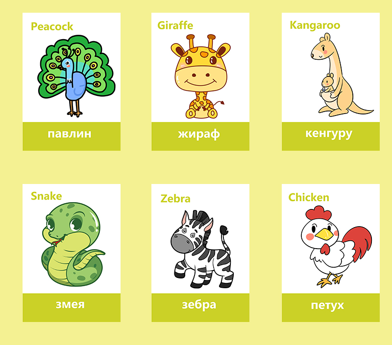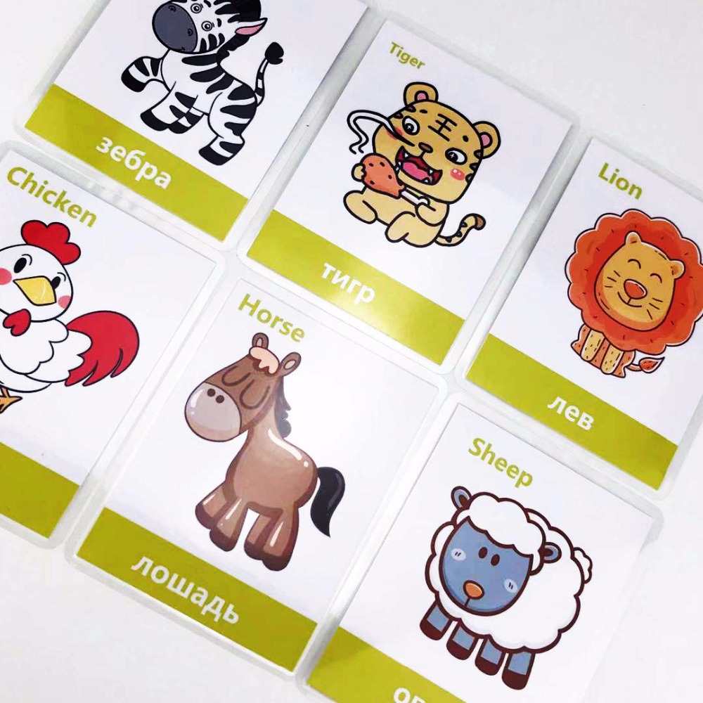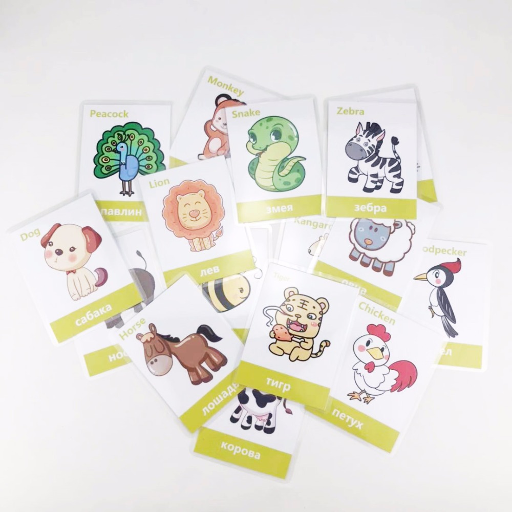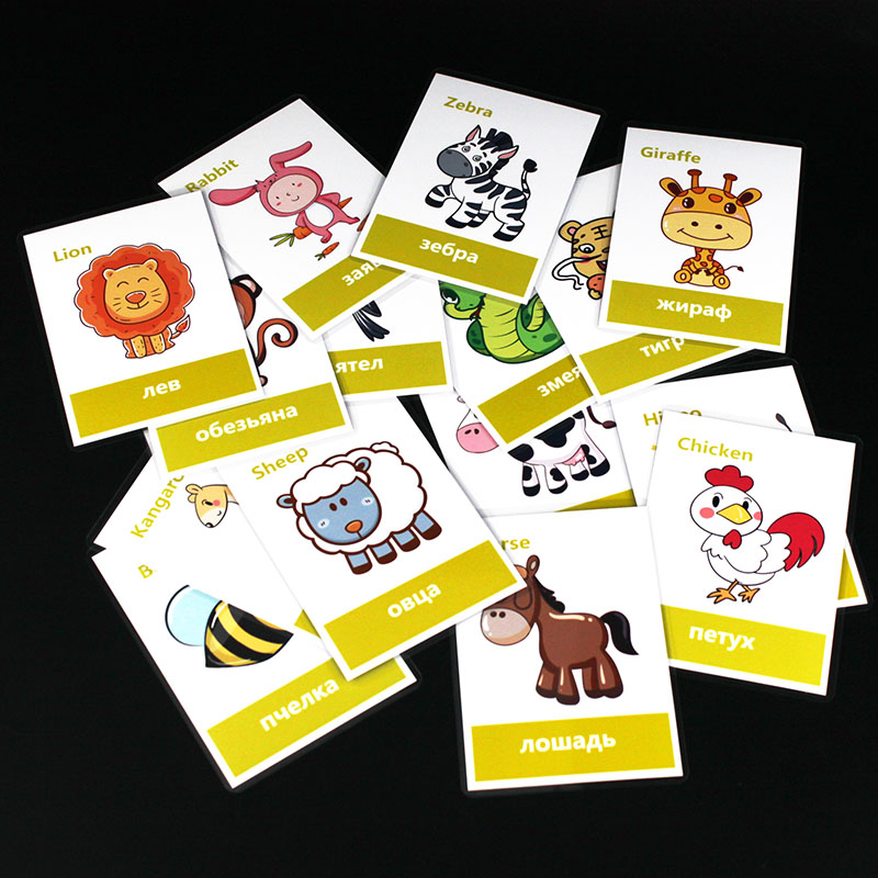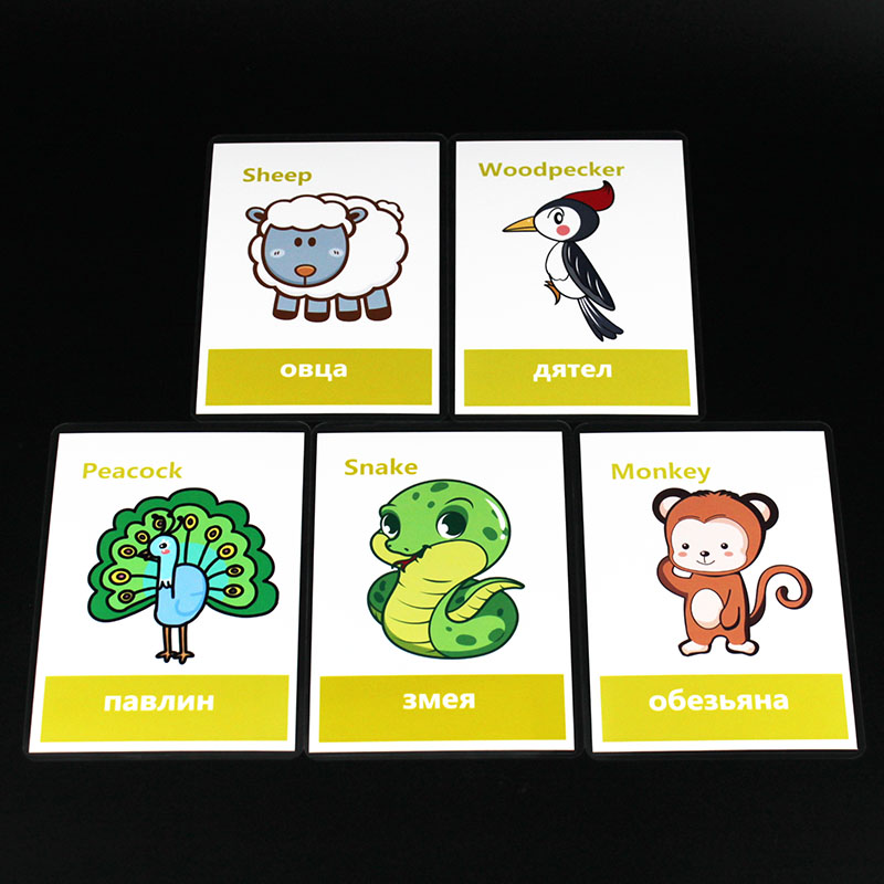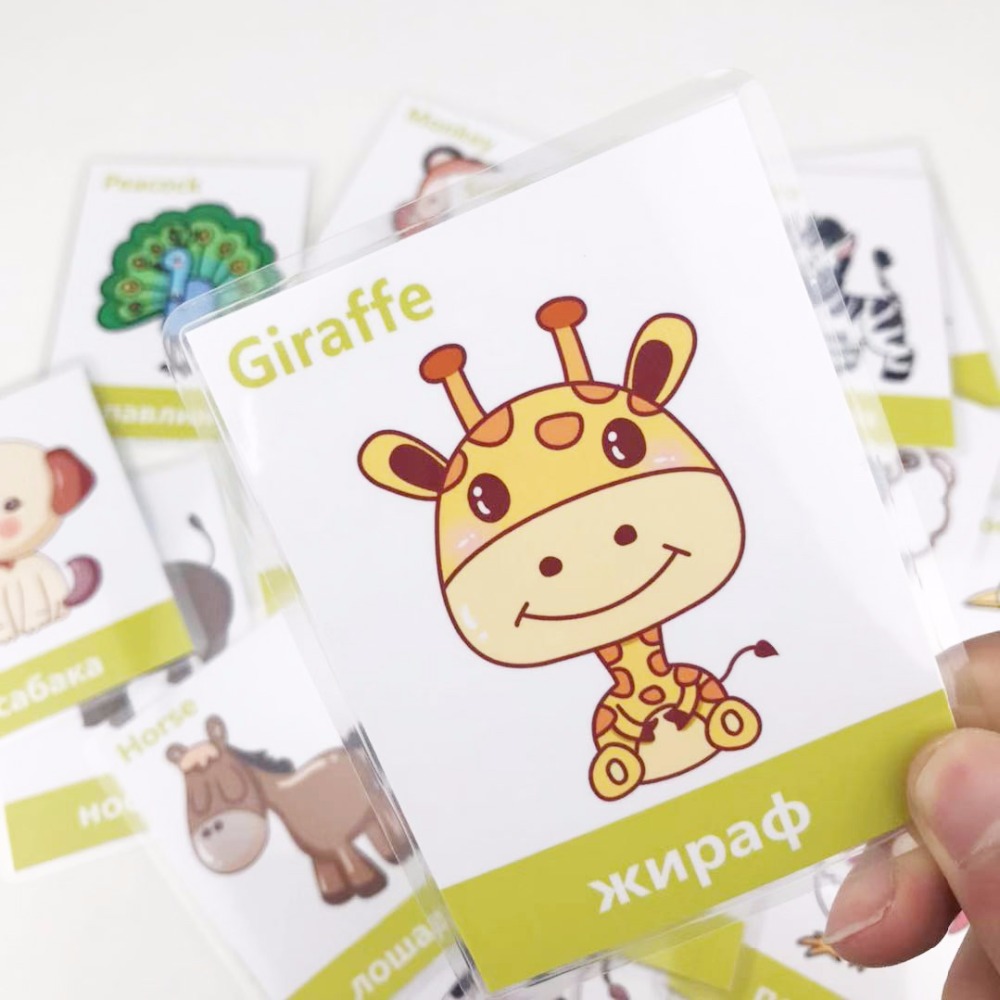 17PC 러시아 동물 기린 영어 학습 단어 카드 영어 학습 카드 조기 교육 어린이 게임 단어 포켓 카드