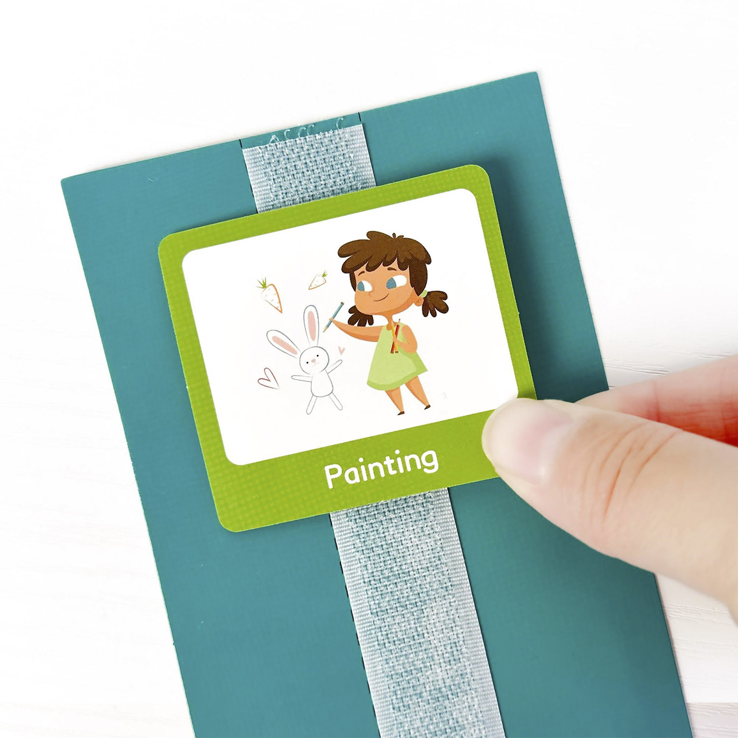 내용: 시각 보조 카드 60 장 + 배경 보드 12 장 + 벨크로 후크 표면 12 장 + 카드에 해당하는 벨크로 모피 표면 3 장 + 접착 점 3 점